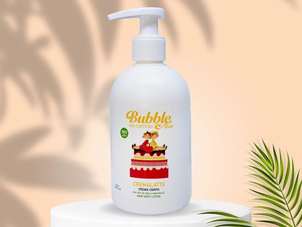 Výrobek italské značky Bubble&CO, která v retro stylu obnovuje a posiluje tradici a nabízí hygienické a pečující výrobky pro dítě a celou rodinu založené na přírodních certifikovaných surovinách, které pocházejí výhradně z ekologického zemědělství. Výrobky jsou navrženy tak, aby vyhovovaly potřebám pleti všech věkových kategorií, od narození až do 100 let!