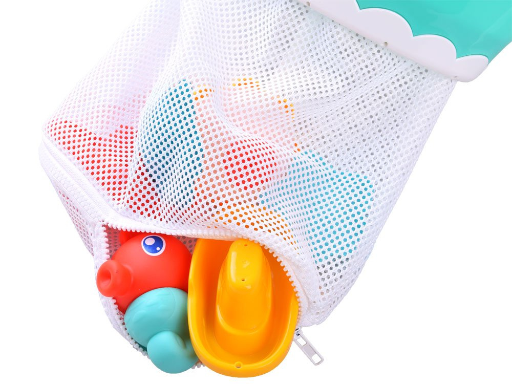 Plastová velká loď s praktickou rukojetí ve tvaru kotvy má na dně připevněnou síťku na mokré hračky. Loď je také možné připevnit pomocí přísavek na rovnou stěnu v koupelně. Mátová barva lodi se žlutou kotvou a bílo-červeným záchranným pásem je skvělým odkazem na námořnické barvy a bude inspirací pro námořní příběhy.