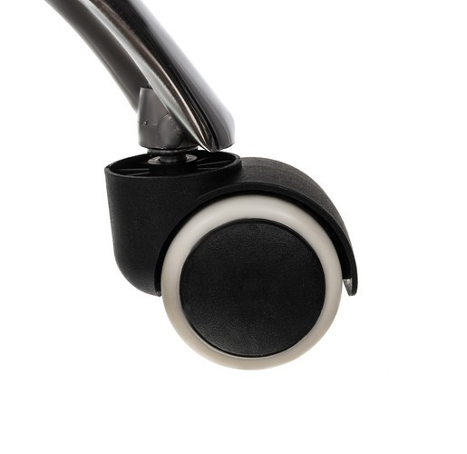 PRYŽOVÁ KOLA - to způsobuje použití gumových kol podlaha není vystavena poškrábání a koberec zůstává neporušený. Vylučuje také použití neskladných podložek , které se nedají snadno čistit a po nějaké době vypadají nevzhledně. Kola dělají zemi bezpečnou a pohyb po nich je tichý a pohodlný . Pětihvězdičková pochromovaná ocelová základna s dvojitými kolečky zajišťuje stabilní pohyb a dodává křeslu eleganci.