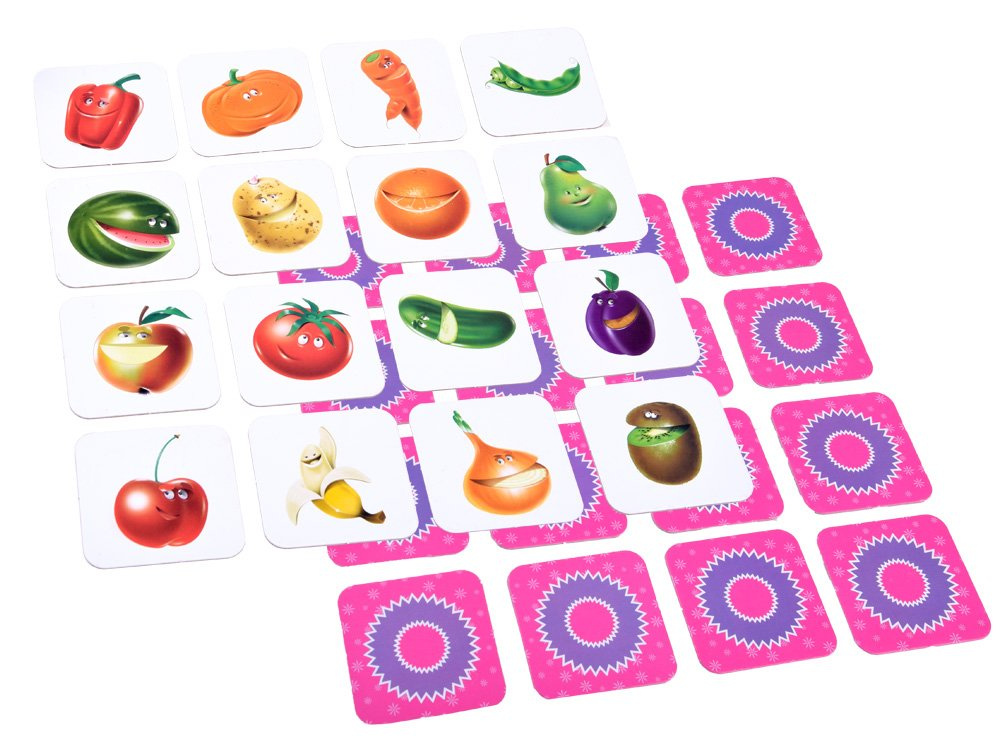Všechny zamíchané karty položte na stůl nebo na podlahu lícem dolů vedle sebe. Hráči pomocí kostek určují pořadí tahů.První hráč odkryje dvě libovolné karty, aby všichni viděli, co obrázky představují. Pokud se obrázky na kartách liší, položí je zpět na místo obrázkem dolů a tah provede další hráč. Pokud jsou obrázky stejné, položí hráč dvojici karet vedle sebe a provede další tah. Hráč odhaluje karty tak dlouho, dokud nesbírá dvojice. Každý se snaží zapamatovat si, co odhalené karty představují, aby toho mohl využít při svém tahu. Vítězem se stává ten, kdo nasbírá nejvíce párů.