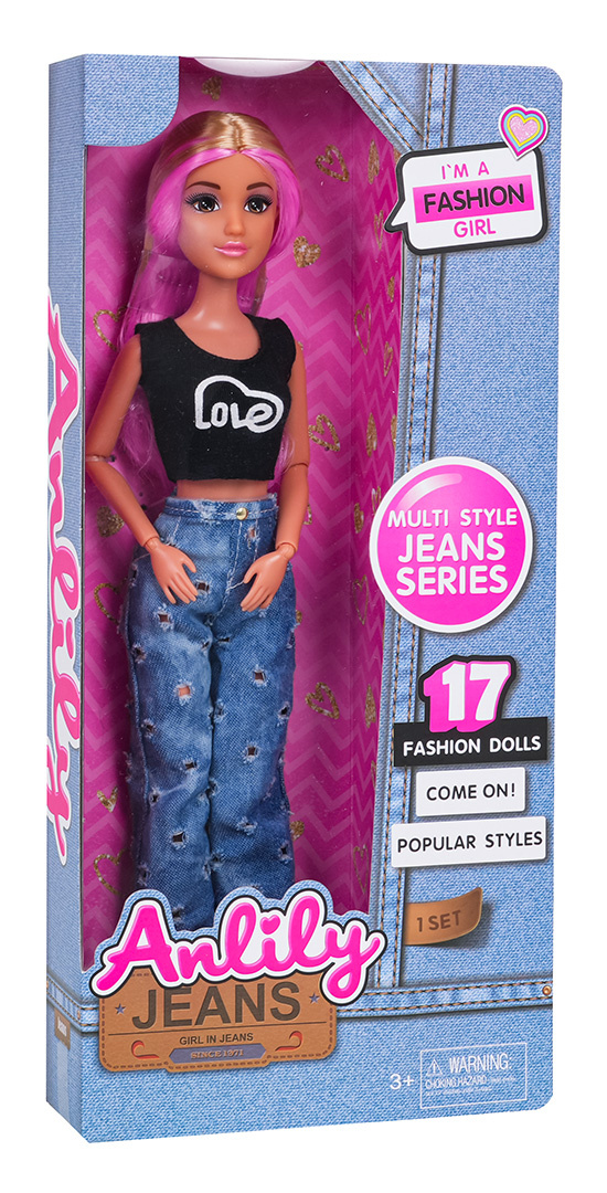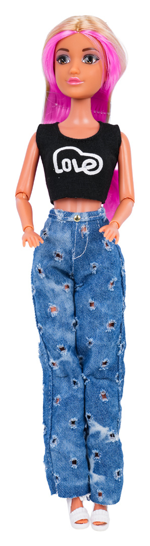 Krásná panenka, pro děti od tří let. Panenka je perfektně zpracovaná, s důrazem na každý detail a zcela bezpečná pro dítě. Je oblečená v halence, kalhotách a botách na podpatku. Oblečky můžeme sundávat a převlékat panenku do jiných. Pohyblivé nožičky a ručičky, ohýbatelné lokty a kolena usnadňují nastavení panenky do různých pozic.