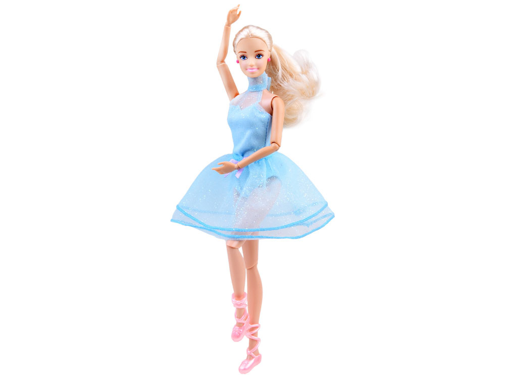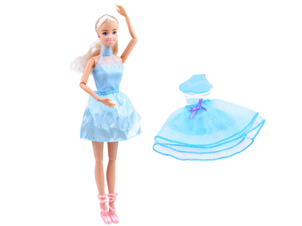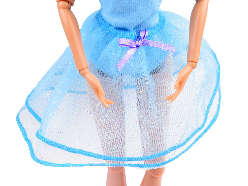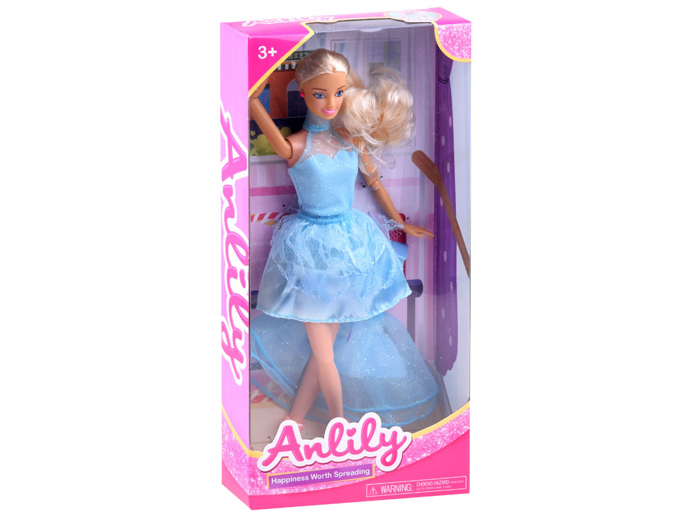 Elegantní panenka Anlily s dlouhými blond vlasy oblečená do nádherných modrých šatů potěší každou holčičku. Panenka má ohýbatelné končetiny v loktech, kolenou skvěle si s ní můžete hrát jako s tanečnicí, baletkou. Kromě šatů, které má panenka na sobě, se dodává s další brokátovou sukní, nohy panenky zdobí roztomilé baletní střevíčky v růžové barvě.