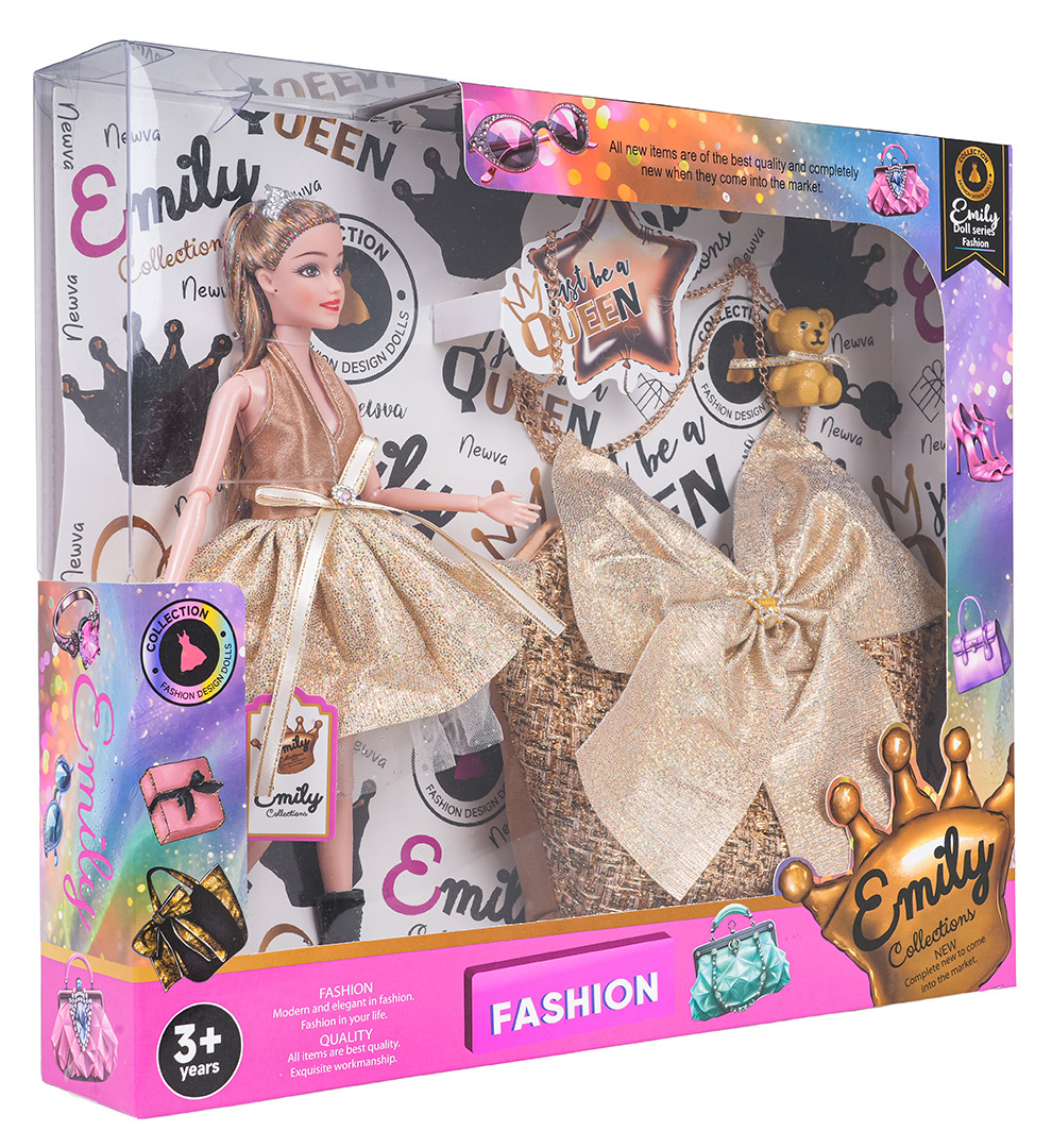 | Sada panenka a kabelka pro dítě od tří let. Sada byla vyrobena s důrazem na detaily, obsahuje krásnou panenku v plesových šatech a velkou kabelku s mašlí. Panenku můžeme schovat do této kabelky a vzít ji všude s sebou.
