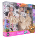 | Rozměry | - panenka cca. 30,5 cm x 12 cm x 5 cm, - kabelka cca. 25 cm x 17 cm x 8,5 cm, - misi ok. 4 cm x 3,5 cm x 2,5 cm, - opakování cca 40 cm x 34 cm x 7 cm. |