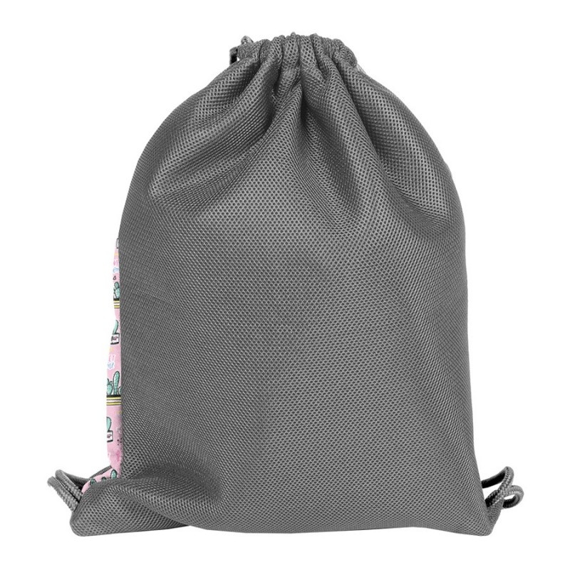 Tlusté, spletené stahovací šňůrky umožňují nošení tašky na zádech nebo přes rameno. Zadní část tašky je vyztužená a zakrytá sítí.