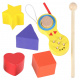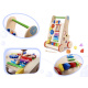 Barevné prvky přitahují oko i malé ručičky svými barvami. Díky neutrální dřevěné základně zároveň hračka nepůsobí na dítě nadměrnými podněty.