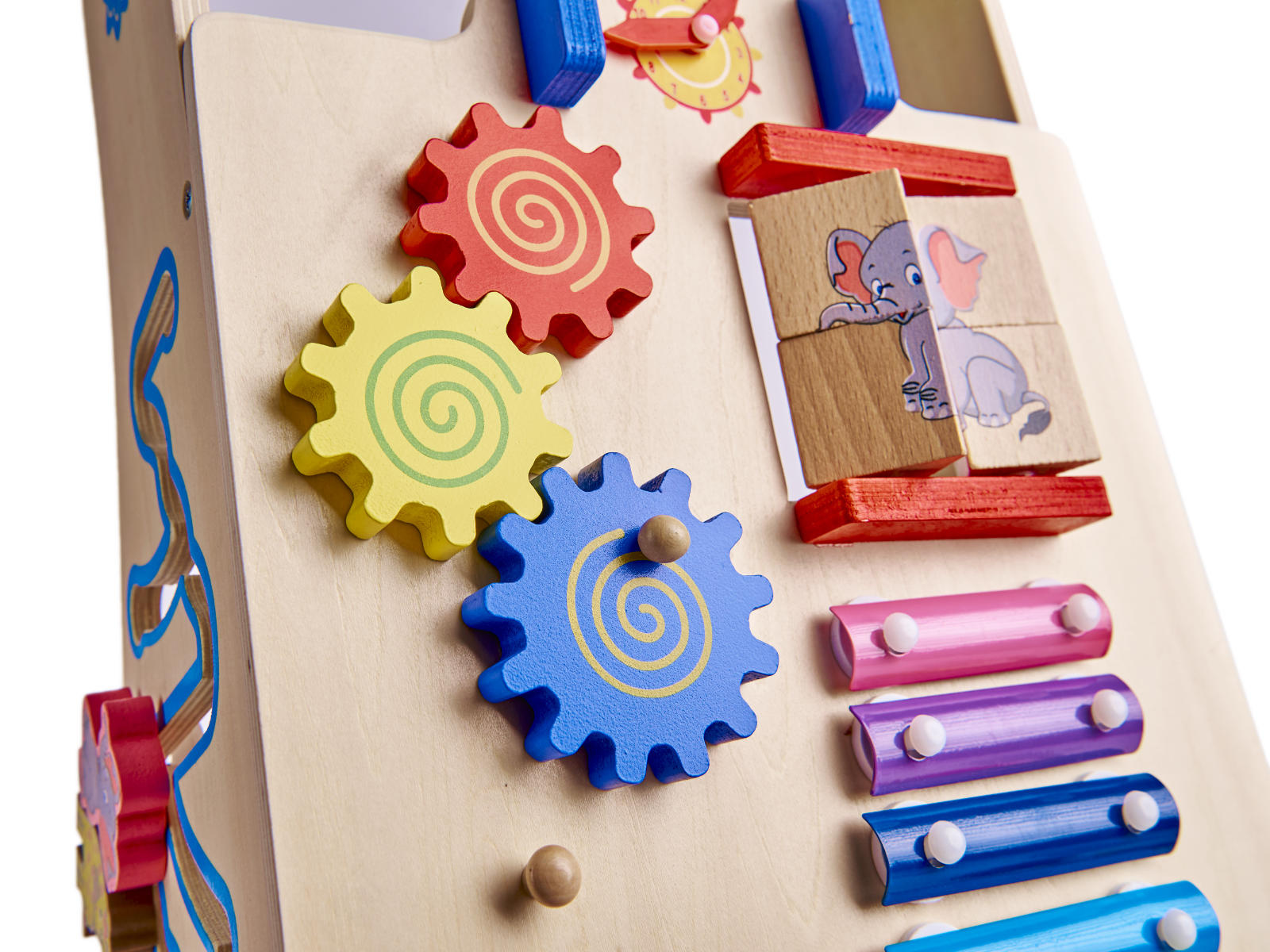 Chodítko, které vašemu děťátku usnadní první krůčky. V pozdějším věku se bude dobře hodit i jako vozík na oblíbené hračky a první počítadlo. Chůze s odrážedlem pomáhá batoleti udržet rovnováhu při učení chůze. Podporuje rozvoj manuálních dovedností a rozvíjí motoriku celého těla. Chodítko povzbudí vaše batole k fyzické aktivitě. Naše chodítko je stabilní oporou pro batole, které se učí chodit. Dítěti se ji nepodaří převrhnout. Dřevěná kolečka jsou chráněna protiskluzovou gumovou vrstvou. Estetický design, výrazné barvy, důraz na detail - příjemný a bezpečný společník pro vaše dítě. Toto odrážedlo se bude líbit rodičům, kteří hledají ekologické doplňky pro své dítě. Dřevěné hračky jsou skvělou volbou! Není to jen chodítko! Vývojáři se postarali o to, aby hra poskytovala batolatům zábavu mnoha způsoby. Na přední straně je umístěna manipulační deska plná prvků potěší děti: