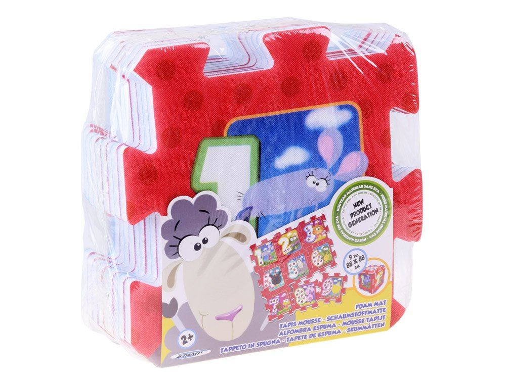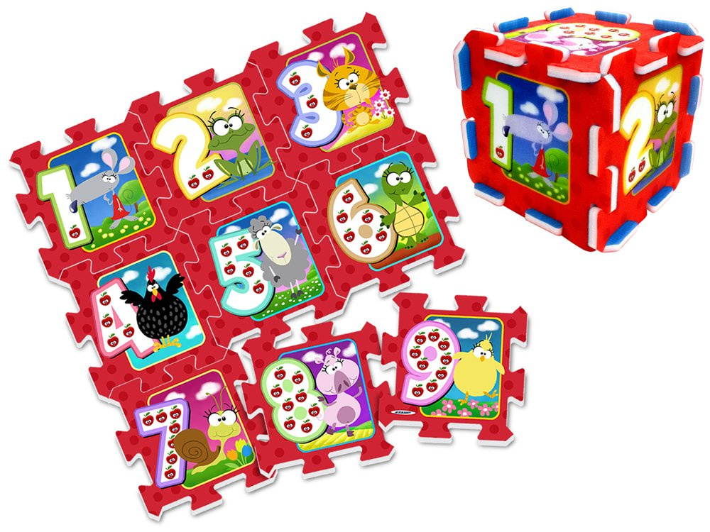 Při skládání puzzle se batole učí poznávat tvary, barvy, rozvíjí svou představivost a učí se rychle reagovat a asociovat.Hádanky uklidňují a učí trpělivosti.Balení obsahuje 9 velkých měkkých dílků s motivy zvířat a čísel 1 až 9. Každé puzzle obsahuje jedno číslo s odpovídajícím počtem jablek a barevné zvíře.Díky tomu se batolata již od útlého věku zábavnou formou seznamují s čísly a počítáním. Veselá grafika zaujme každého malého fanouška dobrodružství.