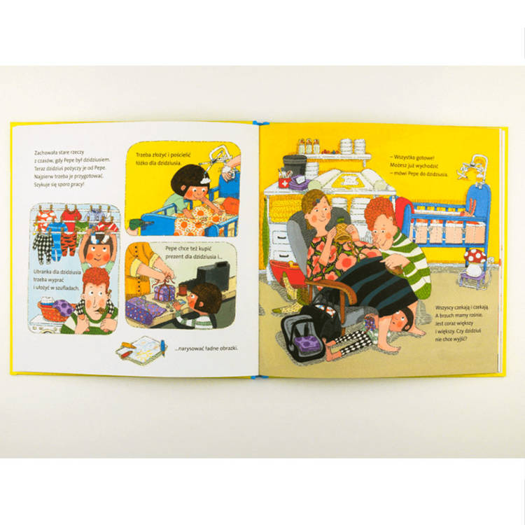 Maminčino bříško je mnohem větší než obvykle. Pepe zjistí, že tam bydlí jeho sourozenci, pomáhá s přípravami a už se těší, co všechno budou moci společně podnikat. Byl to úžasný pocit, když Pepe poprvé rukou ucítil miminko v maminčině bříšku. Bylo to skoro jako rozhovor!