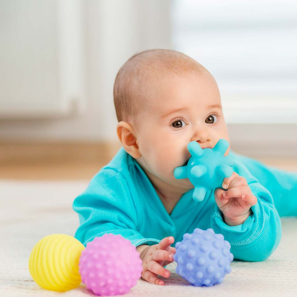 Báječně barevné senzorické míčky s různými strukturami. Míčky byly navrženy s ohledem na nejmenší děti, aby stimulovaly smyslové receptory. Skvělá hračka, která se postará o správný vývoj vašeho dítěte. Házení, chytání a kutálení procvičuje motorickou koordinaci batolat. Každý míček je navíc vybaven pískátkem, které stimuluje sluch. Skvělá forma zábavy, rehabilitace a učení v jednom.