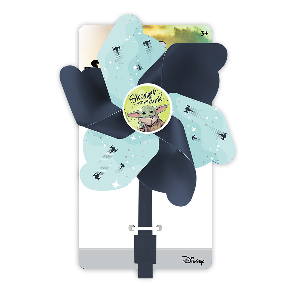 Barevný větrník ozdobený oblíbenou postavou ze Star Wars činí cestu na kole nebo koloběžce ještě zábavnější.