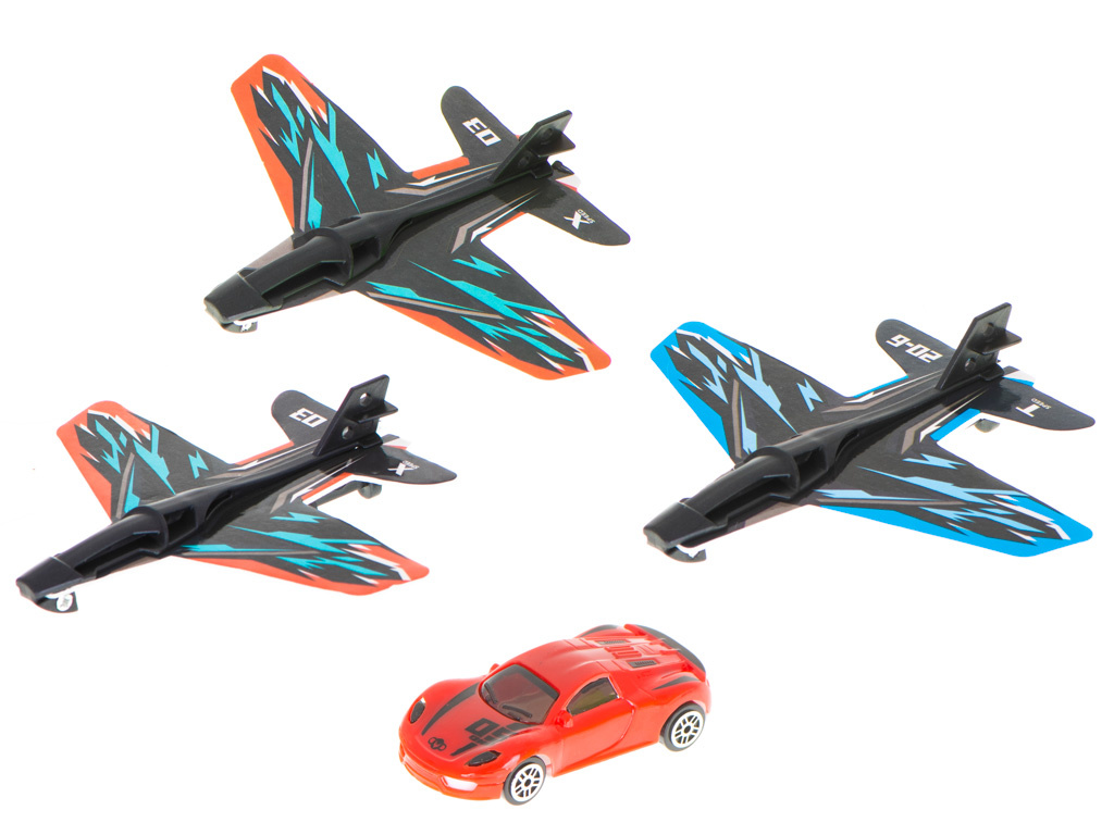 Zažijte opravdovou radost z létání. Nenechte se omezovat svou představivostí. Můžete si "zaletět", kam chcete, a to expresním tempem. A to vše díky jedinečné zbrani a extrémně lehkému letadlu. Nestačí vám jeden kurz k dosažení cíle? Žádný problém, sada má tři letadla a navíc je tu i auto, které cestujícího doveze až ke dveřím.Tato zbraň nestřílí munici! Je to mnohem lepší. Díky tomu letadlo létá opravdu vysoko a daleko. Nevěříte tomu? Přesvědčte se sami! Letadla jsou vyrobena z měkké pěny s plastovými a papírovými prvky. Jsou velmi lehké, takže mohou létat opravdu rychle a daleko.