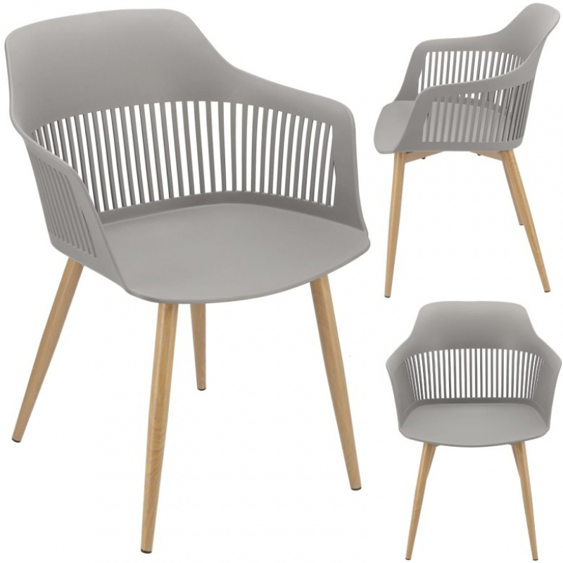 Židle se vyznačuje nejen svým vzhledem, ale také pevností zpracování; je robustní, což zaručuje dlouhou životnost.Ažurové opěradlo a kovové nohy imitující dřevo dodávají eleganci a designový vzhled.