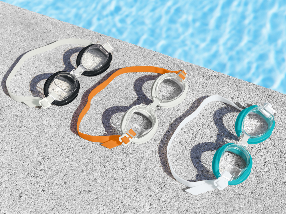 Brýle Bestway®Aqua Burst Essential se vám jistě budou hodit při prvních lekcích plavání. Jsou navrženy pro pohodlí a bezpečnost při aktivitách v bazénu. Čočky brýlí jsou vyrobeny z odolného polykarbonátu, takže jsou odolné proti nárazu. brýle navíc chrání před UV zářením díky speciálnímu povlaku. Nastavitelný nosní můstek a silikonový pásek umožňují individuální přizpůsobení brýlí hlavě uživatele při každém plavání.Ideální pro dospělé a děti starší 14 let.