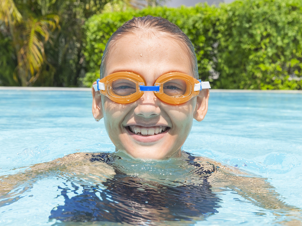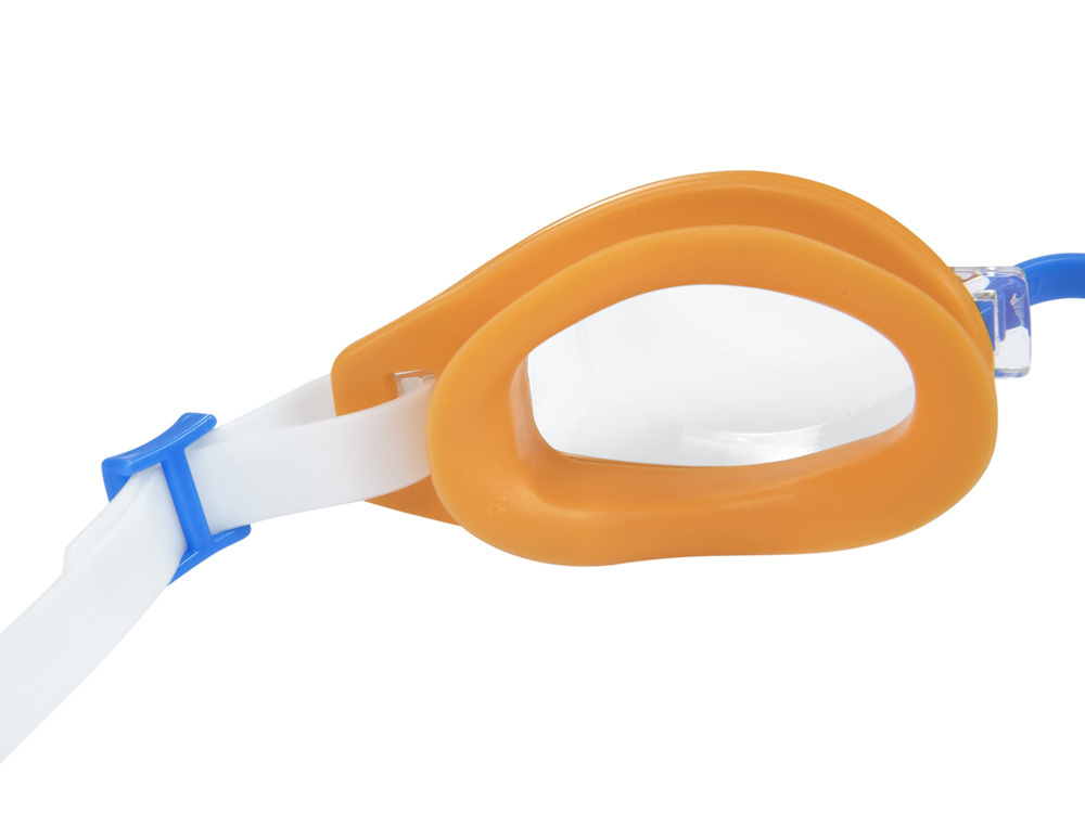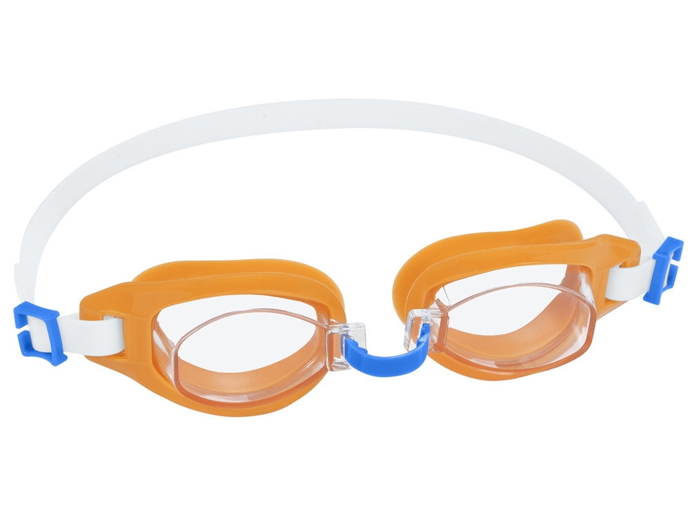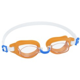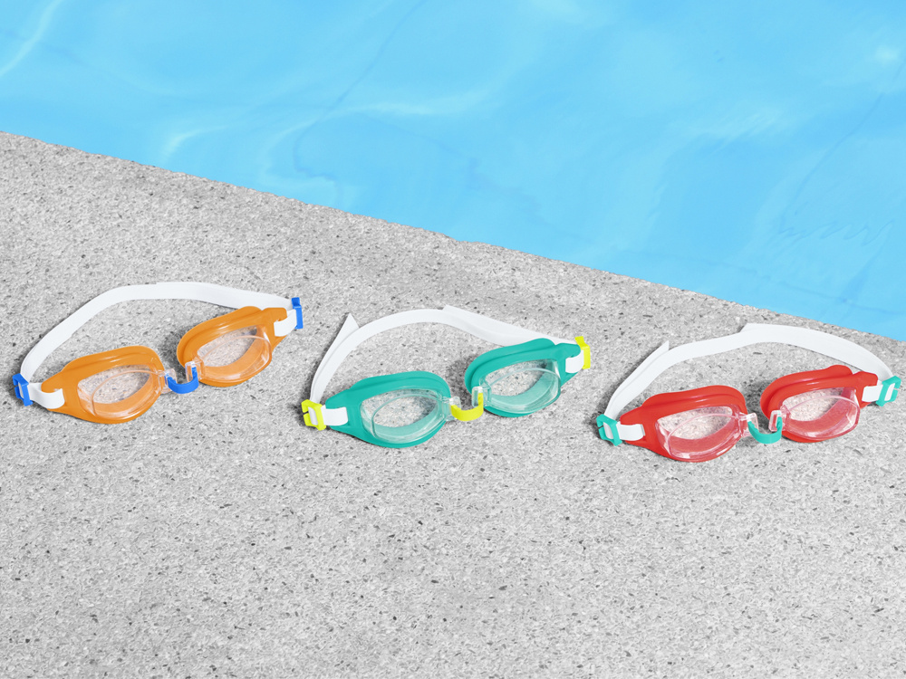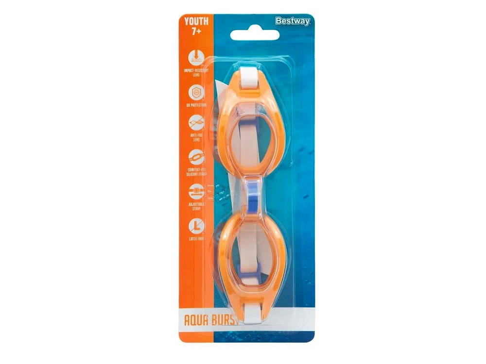 Brýle Bestway® Aqua Burst se vám jistě budou hodit při prvních lekcích plavání. Byly vytvořeny s ohledem na pohodlí a bezpečnost nejmenších dětí během aktivit v bazénu. Skla brýlí jsou vyrobena z odolného polykarbonátového materiálu, takže jsou odolná proti nárazům a vydrží i nárazy dětí, ať už skáčou, potápějí se nebo se cákají. Brýle navíc poskytují ochranu proti UV záření a chrání tak oči vašeho dítěte před ostrými slunečními paprsky při potápění a šnorchlování ve vodě. Nastavitelný nosní můstek a silikonový pásek umožňují individuální přizpůsobení brýlí hlavě uživatele. Brýle byly určeny pro děti od 7 let.