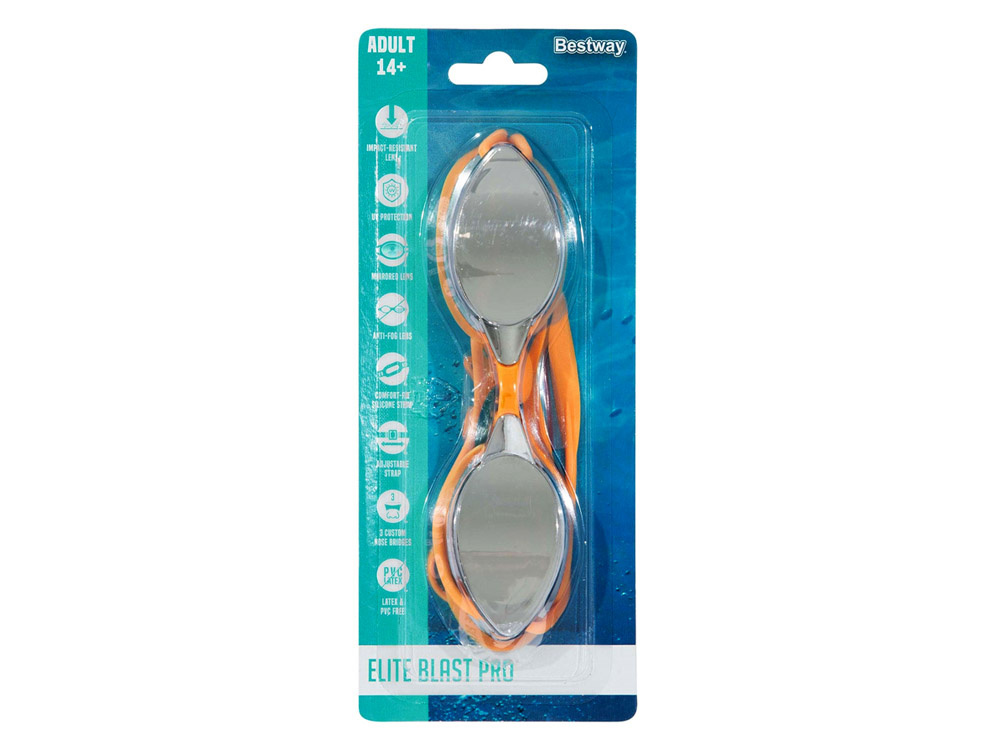 Praktické plavecké brýle Bestway® Elite Blast Pro se budou mladým plavcům jistě hodit. Byly vytvořeny s ohledem na kvalitu, pohodlí a bezpečnost.Zrcadlové polykarbonátové čočky odolné proti nárazu jsou opatřeny ochranou proti UV záření a vrstvou proti zamlžování. Tyto brýle jsou plně nastavitelné, takže vám správně padnou a zabrání úniku vody. Pohodlný nosní můstek a silikonový pásek na hlavu s rychlým nastavením umožňují individuální přizpůsobení brýlí hlavě uživatele při každém plavání.Ideální pro dospělé a děti starší 14 let.
