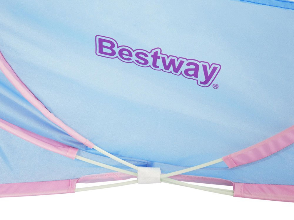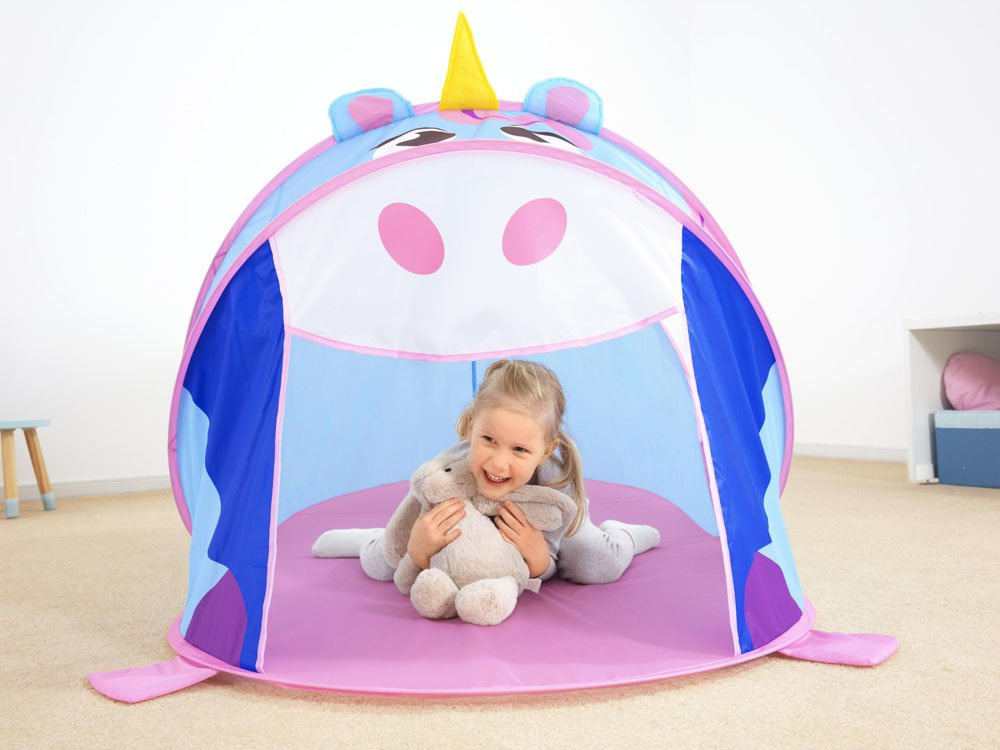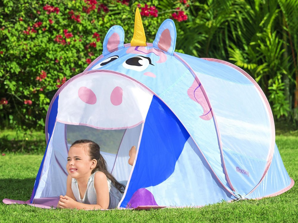 Stan Bestway AdventureChasers™ Unicorn je určen pro všechny děti, které milují pohádkové jednorožce. Stan v barvách a grafice jednorožce poskytne každému dítěti spoustu kreativní zábavy a pomůže mu vymýšlet neobvyklá dobrodružství pro pohádkové koně. Samorozkládací stan lze postavit kdekoli v domě, na terase, na zahradě, na pláži, u jezera u moře nebo v kempu. Stan má vchod a průhledné síťky po stranách, které zajišťují dobré větrání a rodičům umožňují sledovat, co jejich dítě dělá. Stan s podlážkou umožňuje umístění matrace se spacím pytlem (68111 Bestway), takže vaše dítě bude mít naprosté pohodlí.