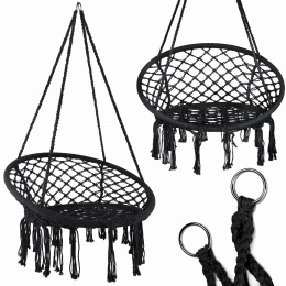 Vlastnosti, které si zamilujete: Odolnost a pohodlí – nosnost až 120 kg, díky čemuž se pohodlně posadí i dospělý Elegantní, hluboká černá barva – univerzální a nadčasová, snadno ji zakomponujete do různých aranžmá Pletené opěradlo o průměru 70 cm – poskytuje měkkou a útulnou oporu pro záda Sedák o průměru 50 cm – ideální pro pohodlné sezení a relaxační houpání Celkové rozměry: 70 x 50 x 110 cm – kompaktní tvar, který snadno namontujete kdekoli
