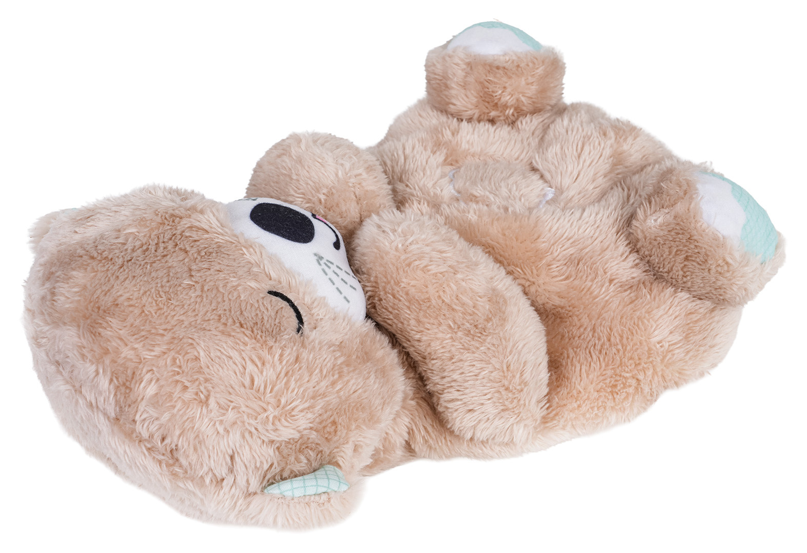 Funkce: - vhodná pro miminka od prvních dnů života, - vyrobeno z bezpečných materiálů, - ideální na mazlení, hlazení, - uklidňuje miminko, dává pocit bezpečí, - podsvícené bříško, - bříško se zvedá nahoru a klesá, jako při dýchání, - zvukové efekty: zvuky dechu, tlukot srdce, chrápání, uklidňující melodie, - možnost regulace hlasitosti, - možnost vypnutí pohybů hračky, - možnost vyjmutí panelu z vnitřku hračky. |