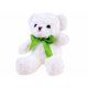 Plyšový bílý medvěd je maskotem pro každého. Roztomilý bílý medvídek je velký přibližně. 30 cm vysoký, černé plastové oči, vyšívaný noční stín a zelená lesklá mašle pod krkem, skutečně elegantní vzhled. Maskot je vyroben z příjemného, měkkého materiálu. Medvídek, jak se na medvídka sluší, může být skvělým dárkem pro každého!