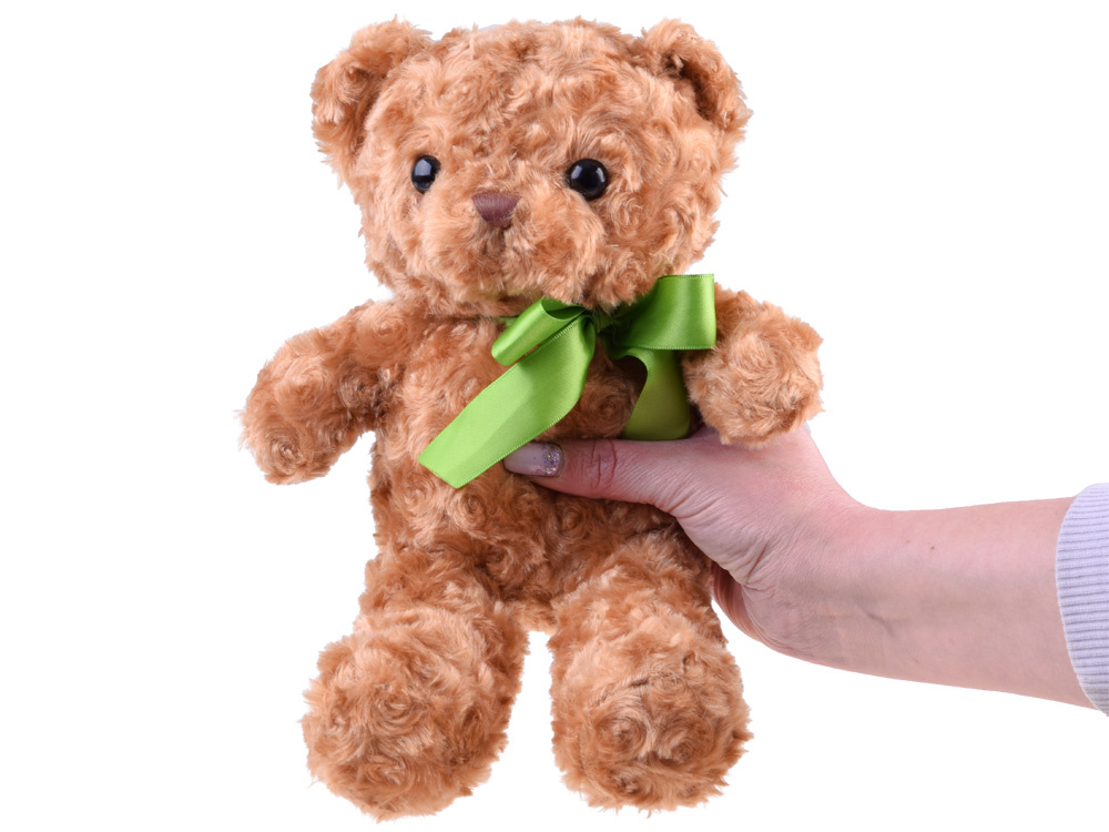 Plyšový hnědý medvěd je maskotem pro každého. Roztomilý hnědý medvěd je velký přibližně. 30 cm vysoká, hnědé plastové oči, vyšívaná noční košilka a zelená lesklá mašle pod krkem, opravdový elegán. Maskot je vyroben z příjemného, měkkého materiálu. Medvídek, jak se na medvídka sluší, může být skvělým dárkem pro každého! Takový maskot je ideální na mazlení, hlazení, svěřování tajemství, čtení, cestování atd.