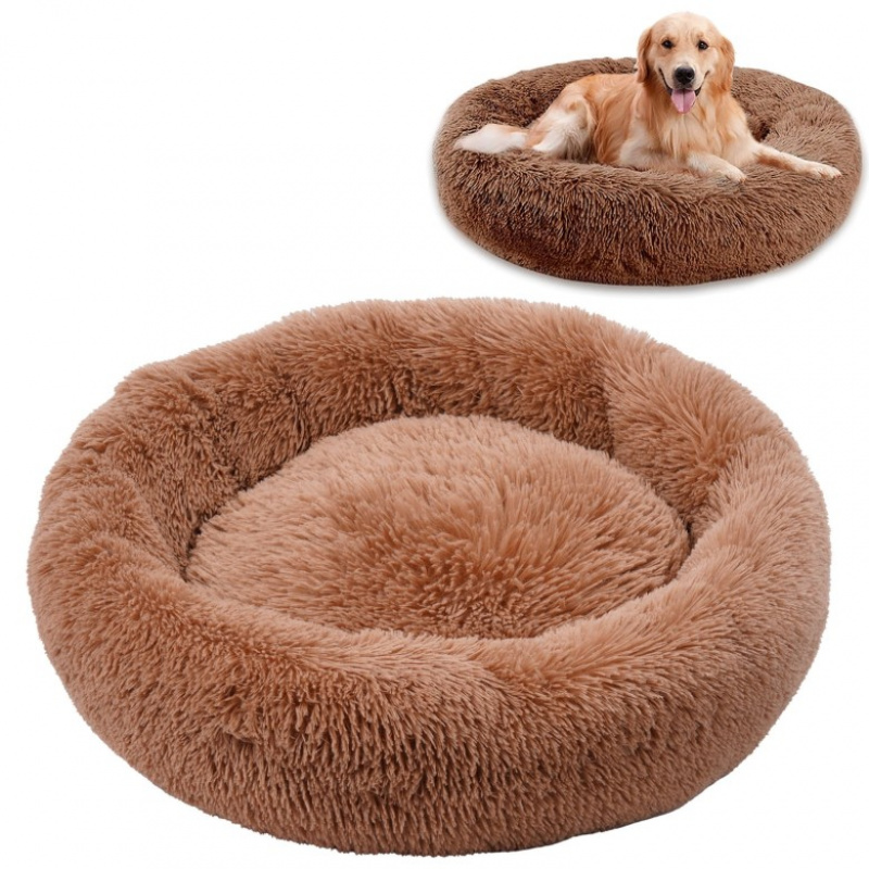 Plyšový kulatý pelíšek, hnědý - 80x80