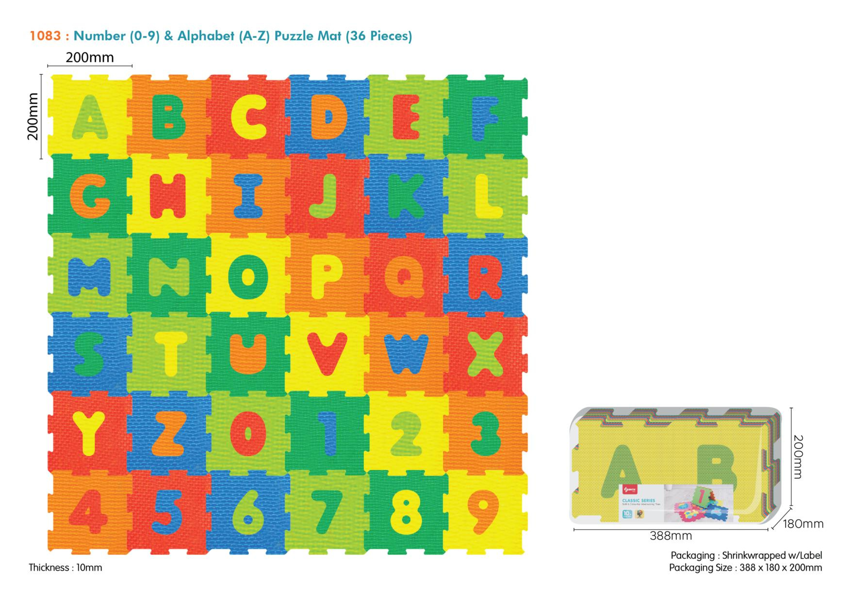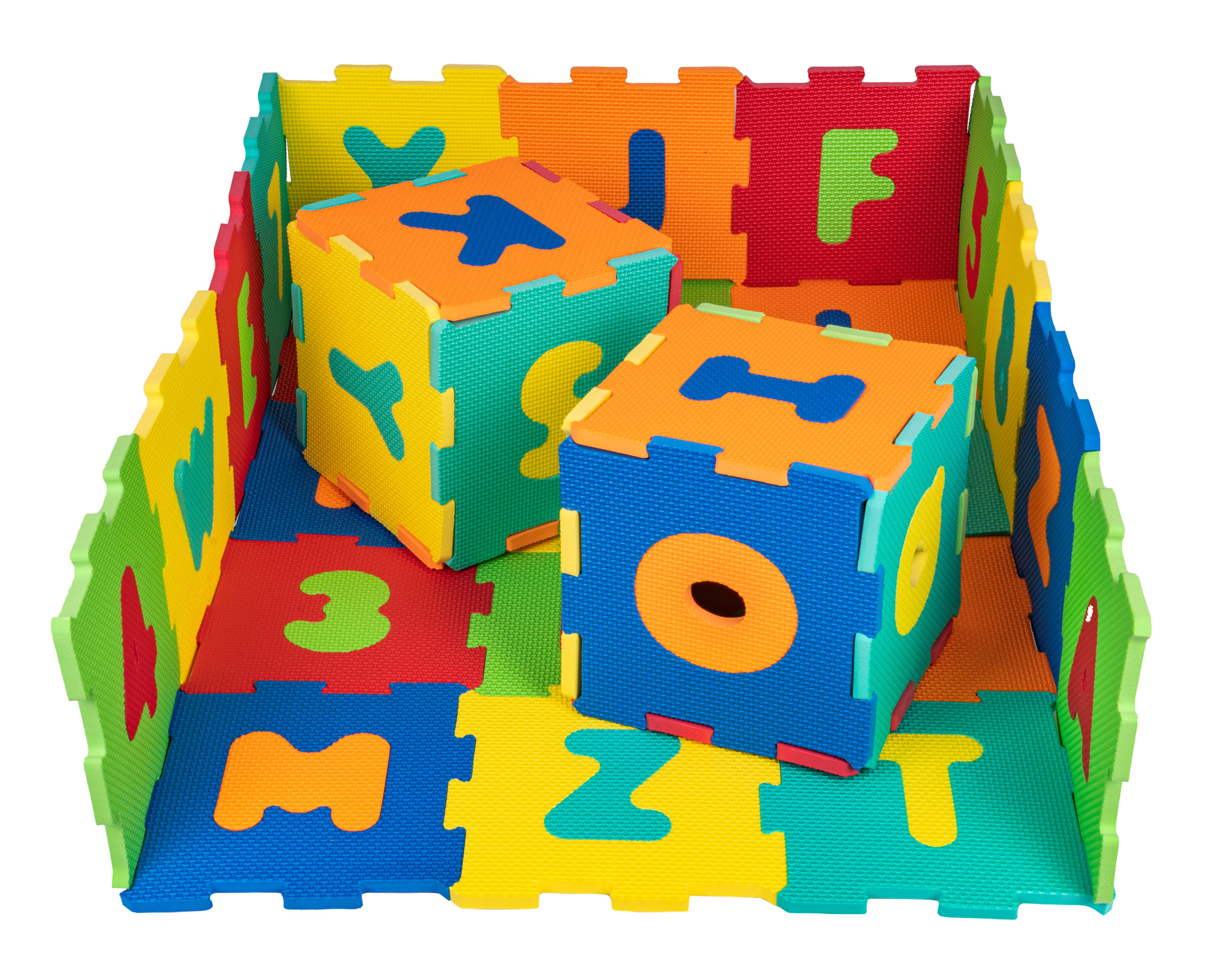 Sada obsahuje 36 skládaček, ze kterých lze vyrobit podložku na podlahu, která chrání před chladem a tlumí pády, nebo z nich postavit trojrozměrné figurky, např. kostka. Puzzle má vyjímatelné číslice a písmena, díky nimž se batole naučí přiřazovat tvary.