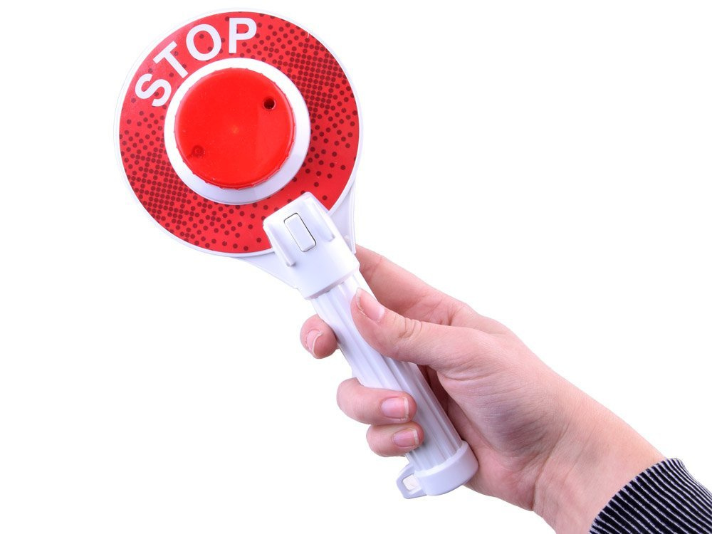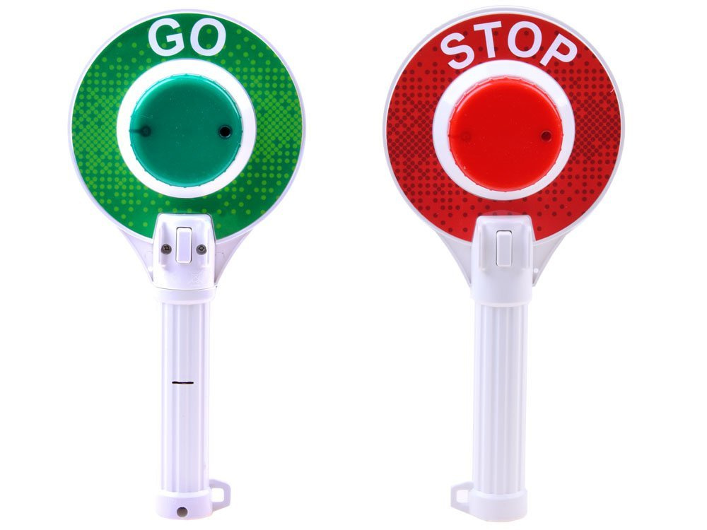 Lízátko je oboustranné, na jedné straně svítí zelené světlo s nápisem GO, na druhé straně svítí červené světlo s nápisem STOP.