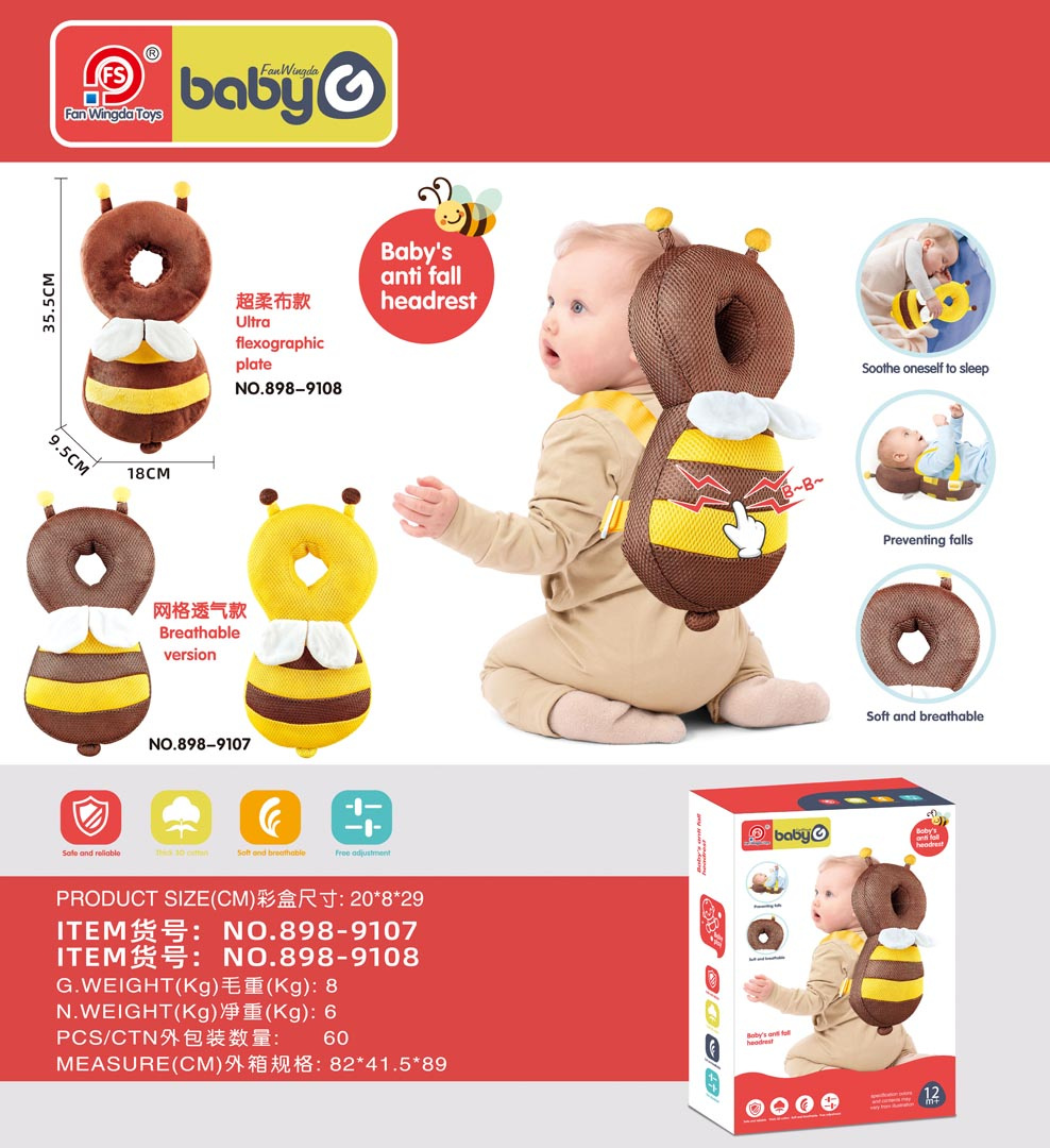 Multifunkční chránič pro děti, které se učí chodit od dvanáctého měsíce života. Sada připomíná batůžek ve tvaru včelky, jehož úkolem je chránit dítě před poraněním hlavy při pádu. Může však také sloužit jako polštář nebo plyšová hračka. Má ergonomický tvar, je lehká, neomezuje pohyby dítěte a je snadno přizpůsobitelná díky nastavitelným popruhům. Chránič se nasazuje na záda miminka jako batůžek.
