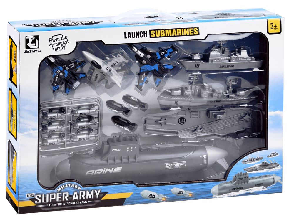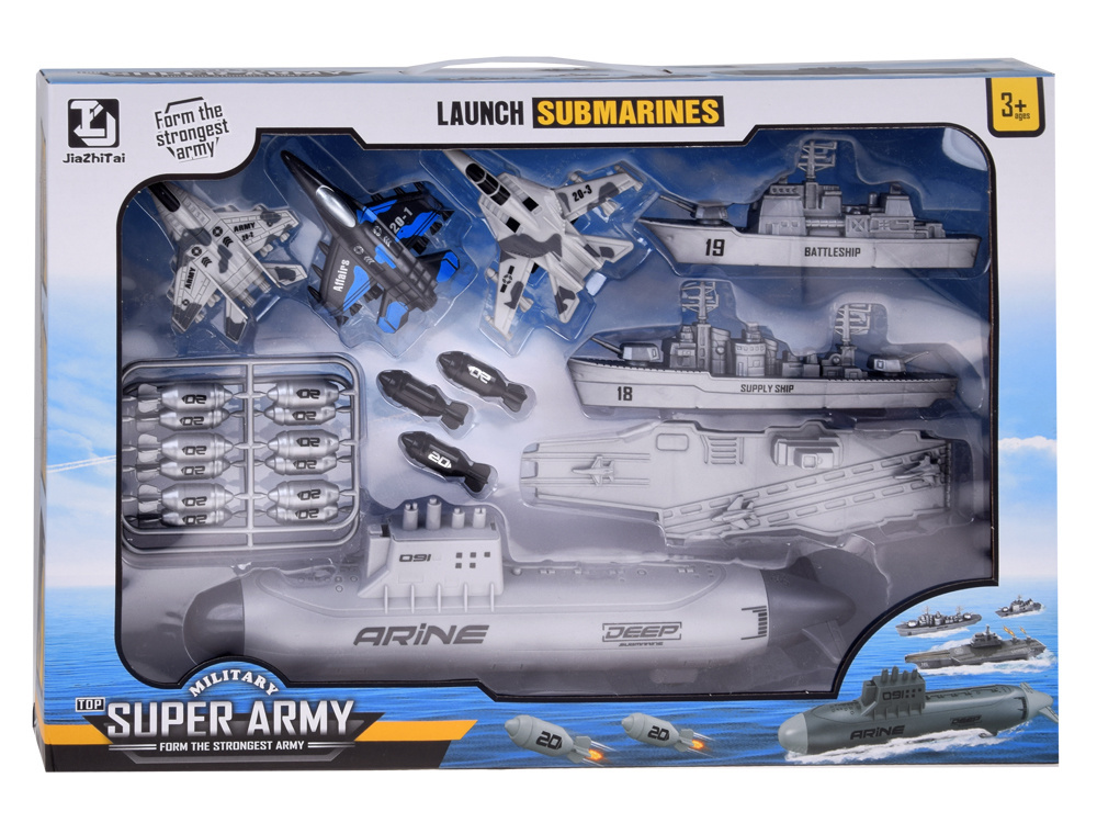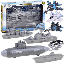 Sada letadel, vojenských lodí a ponorky, kterou malý voják vlastní, je nezbytným vybavením pro operace na bojišti. Malý stratég bude mít k dispozici námořní flotilu a tři stíhací letouny, které budou hlídat oblast ze vzduchu. Sada je celá vyrobena z plastu v příslušných barvách a grafice. Kromě toho má ponorka pohon dvou zadních kol, takže hra může být realističtější.