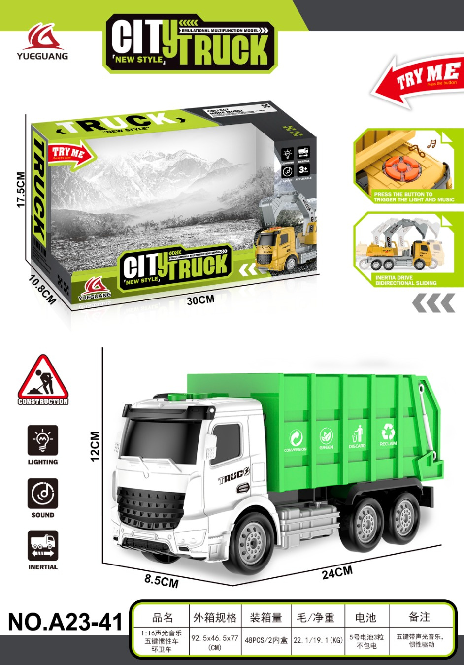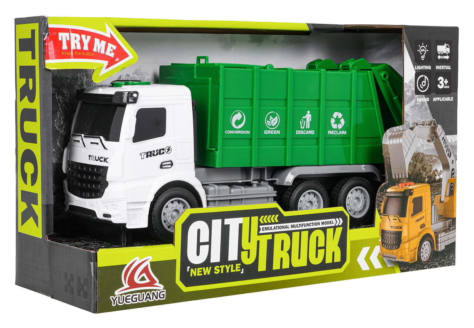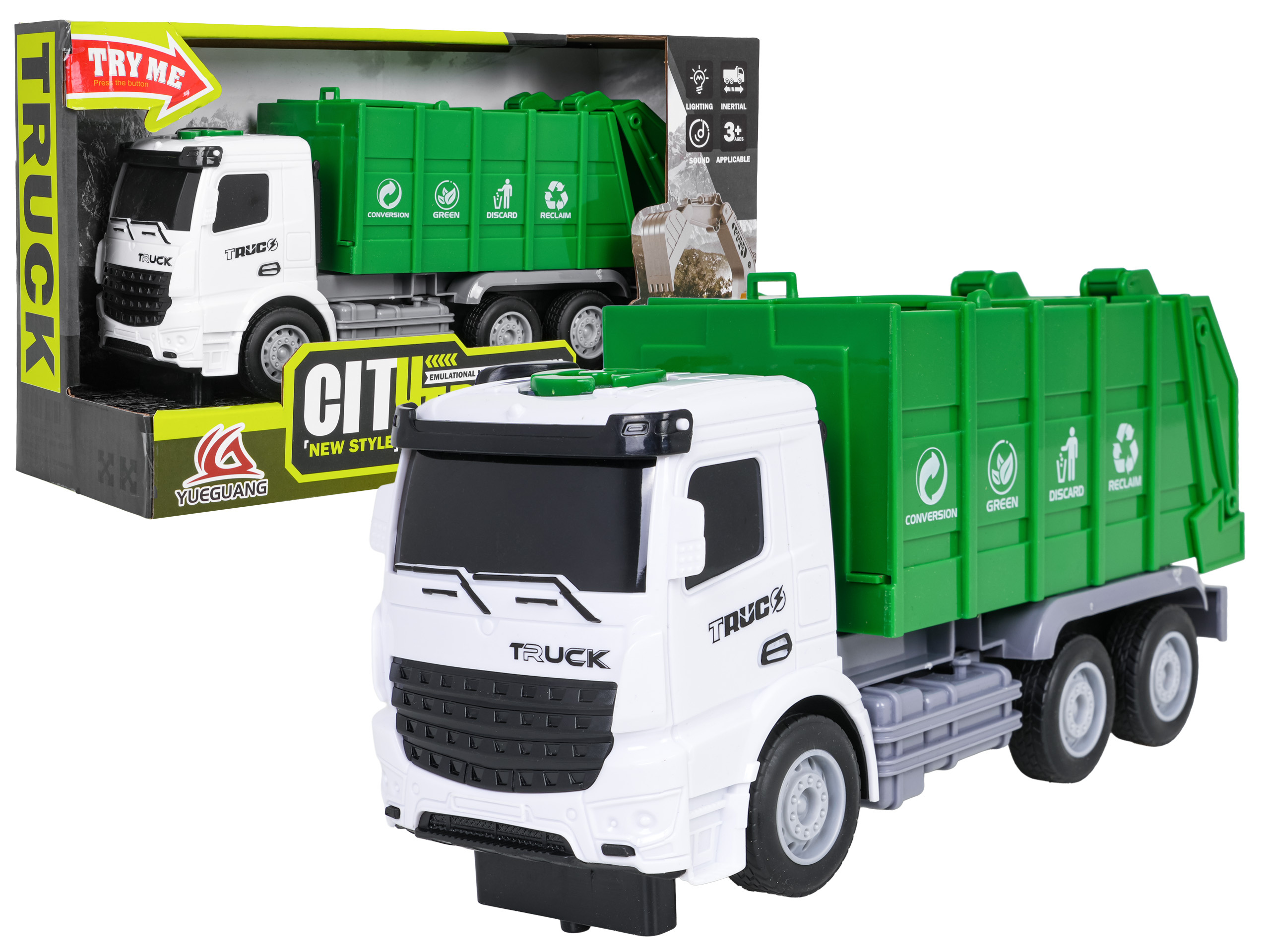 Interaktivní popelářské auto se zvukovými a světelnými efekty pro děti starší tří let. Hračka byla vyrobena z nejkvalitnějších materiálů s důrazem na detaily. Kola vozidla jsou gumová a pohon umožňuje plynulou, dynamickou jízdu. Na vrcholu kabiny se nachází panel spouštějící zvukové efekty, jako jsou zvuky startu vozidla, jízdy, couvání a energická melodie, a světelné efekty v podobě blikajících světýlek. Hračka je napájena bateriemi typu 3 x AG13 (baterie jsou součástí balení).