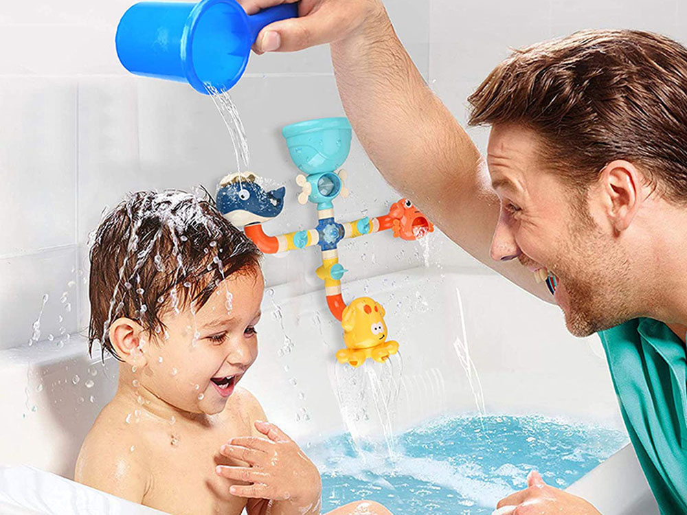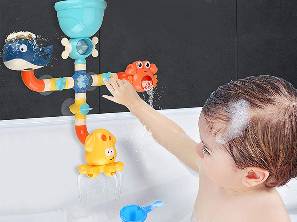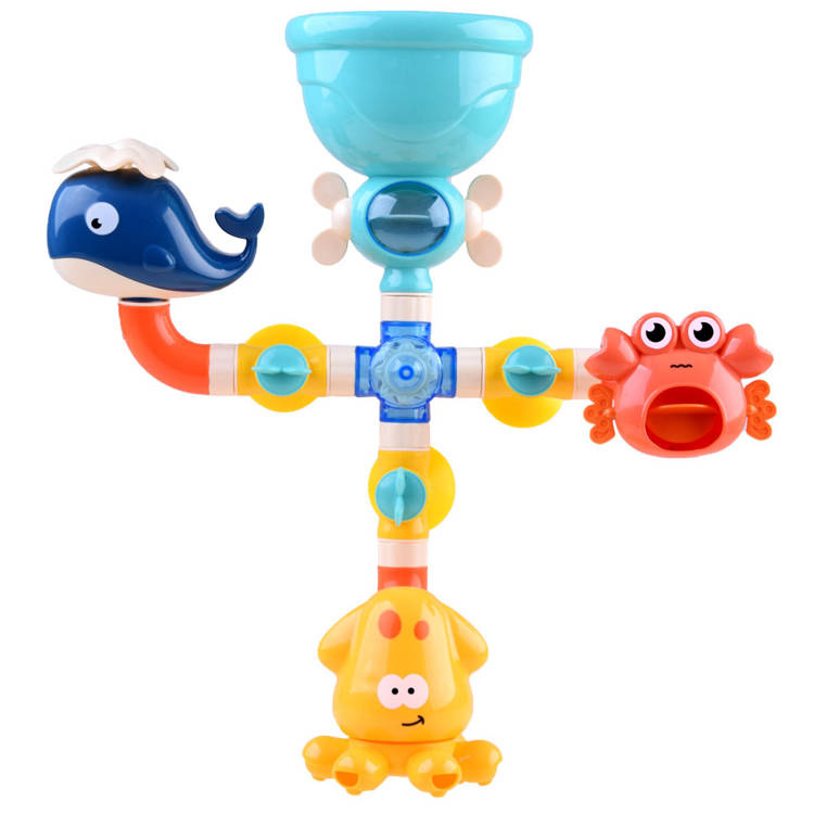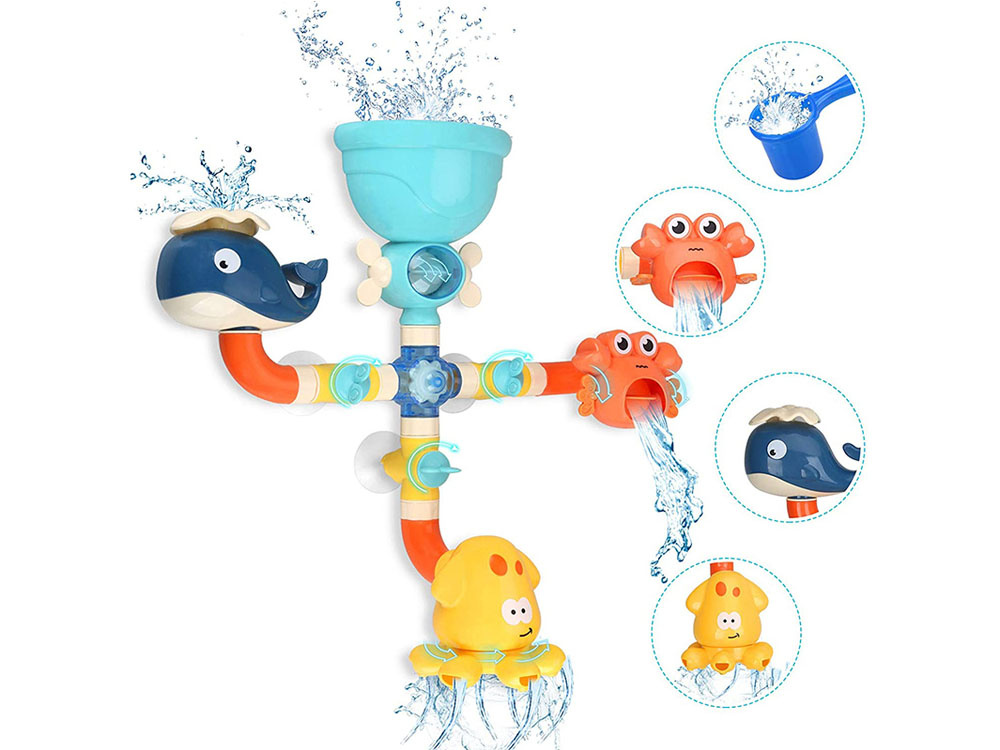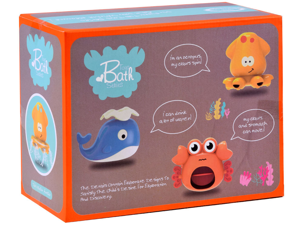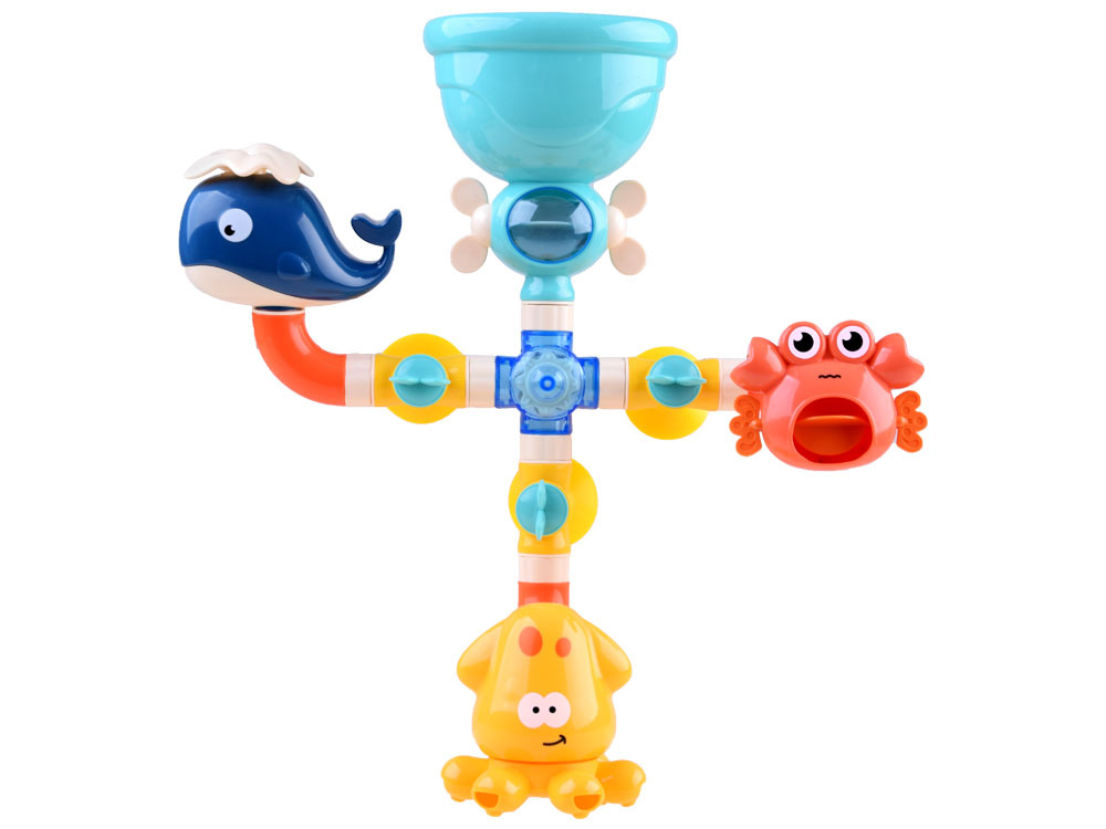 Voda se do hračky nalévá shora, pak se dostává dovnitř a následně otvory ven a vytváří fontánu nebo vodopád. Díky nasazeným nálevkám je nalévání vody snadné a zábavné. Fontána na. Tato barevná hračka, vyrobená z bezpečných materiálů, zatraktivní každodenní koupání a povzbudí ke hře každé děťátko. Tvary mořských živočichů chobotnice, velryby a kraba dodávají hračce námořnický nádech. Děti rády skládají, rozkládají a vytvářejí různé kombinace. Tuto hračku do vany lze snadno sestavit a rozložit a můžete si s ní hrát v mnoha různých kombinacích. Můžete měnit rozmístění zvířat, odpojovat jednotlivé trubice nebo pomocí žlutých knoflíků zavírat či otevírat přívod vody.