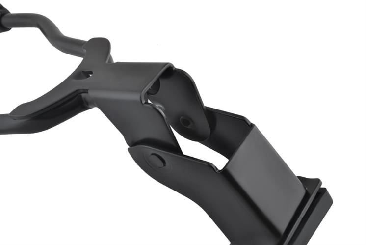 Dvojitá kovová noha kola k připevnění na zadní část kola (mezi zadní kolo). Centrální montáž, pomocí šroubu. Sada obsahuje mezikus, který chrání kolo proti poškrábání při instalaci nohy a zvedá nohu (možnost vyjmutí mezikusu).