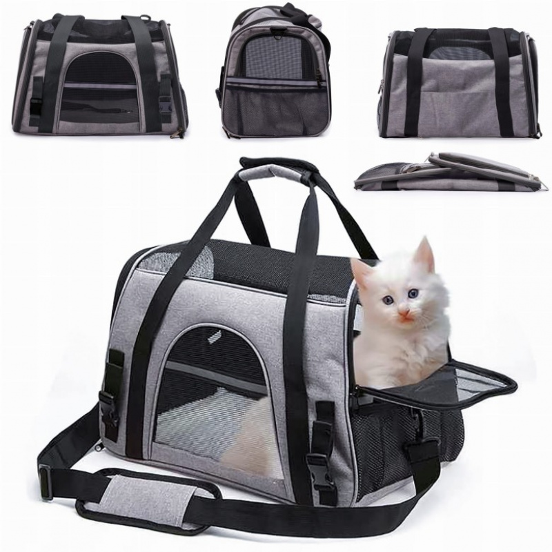 Transportér vyrobený z lehkého, ale odolného materiálu, snadno čistitelný. Má nastavitelný pásek, pohodlné úchyty a měkký polštář uvnitř. Možnost otevírání z boku usnadňuje vkládání a vyjímání zvířete.Kratky větrací otvory zajišťují čerstvý vzduch a boční kapsa praktické uložení příslušenství.Dobrá ventilace - každé z oken má hustou, vinylovou síťku na zip, která zajišťuje přístup čerstvého vzduchu a viditelnost. Pelíšek vyrobený z měkkého materiálu. Nastavitelný ramenní popruh. Vnitřní bezpečnostní vodítko. Skládací a lehká - pokud tašku nepotřebujete, můžete ji složit naplocho, takže nezabírá mnoho místa.