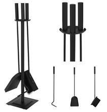 Celá sada nářadí pro krb je umístěna na stojanu, který je součástí sady. Je vybaven speciálními držáky pro zavěšení veškerého nádobí. Zespodu jsou navíc použity 4 protiskluzové nožky, které zabrání sklouznutí produktu. Klasická černá sada vypadá elegantně vůči jakémukoli typu interiéru.