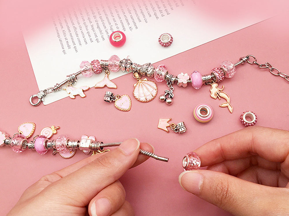 Sada korálků ve šperkovnici na výrobu vlastního neobvyklého náramku poskytne každé dívce spoustu pozitivní činnosti. Dívky, které mají rády ruční práce, najdou v této sadě spoustu inspirace pro tvorbu vlastních šperků. A je dobře známo, že každý šperk, který si sami vyrobíte, bude jedinečný.