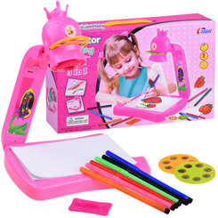 Skvělý návrh pro batole, které rádo maluje, kreslí. Tabule se zpětným projektorem se třemi sadami vzorů k zobrazení na tabuli nebo na stěně pravděpodobně zaujme každého malého umělce. Projektor má nastavitelné úhly, takže jej lze použít jak na samotné tabuli, tak i pro zobrazení obrázků na stěně. Lze jej zcela složit a uložit do zásuvky - ve složeném stavu zabírá velmi málo místa. Využití zpětného projektoru je široké, můžete promítat obrázky (zvířata, auta, různé druhy jídel...) na tabuli, ale také večer na zeď. Deska je velmi pěkně vyrobená a bude s ní spousta zábavy. Skvělá zábava zajištěna.