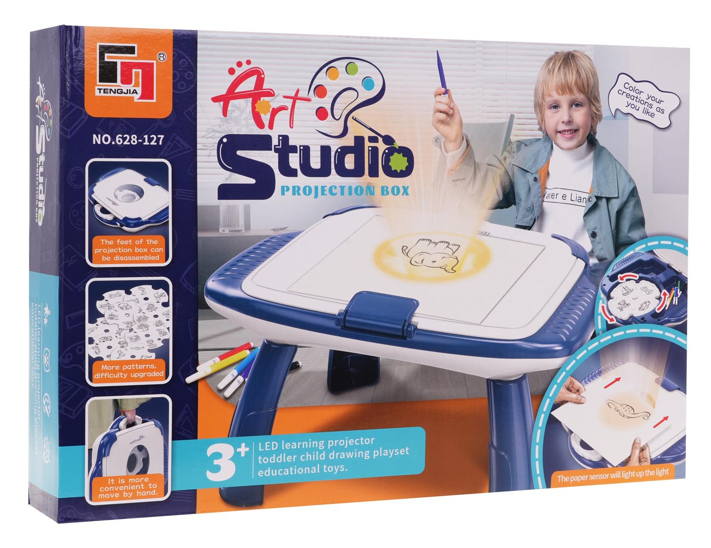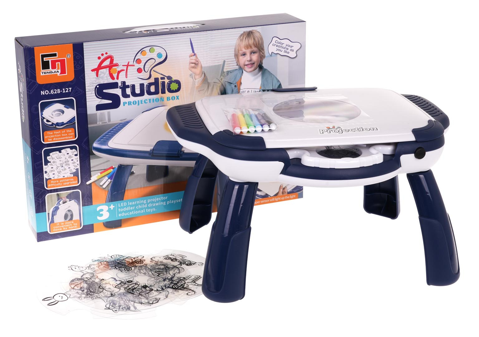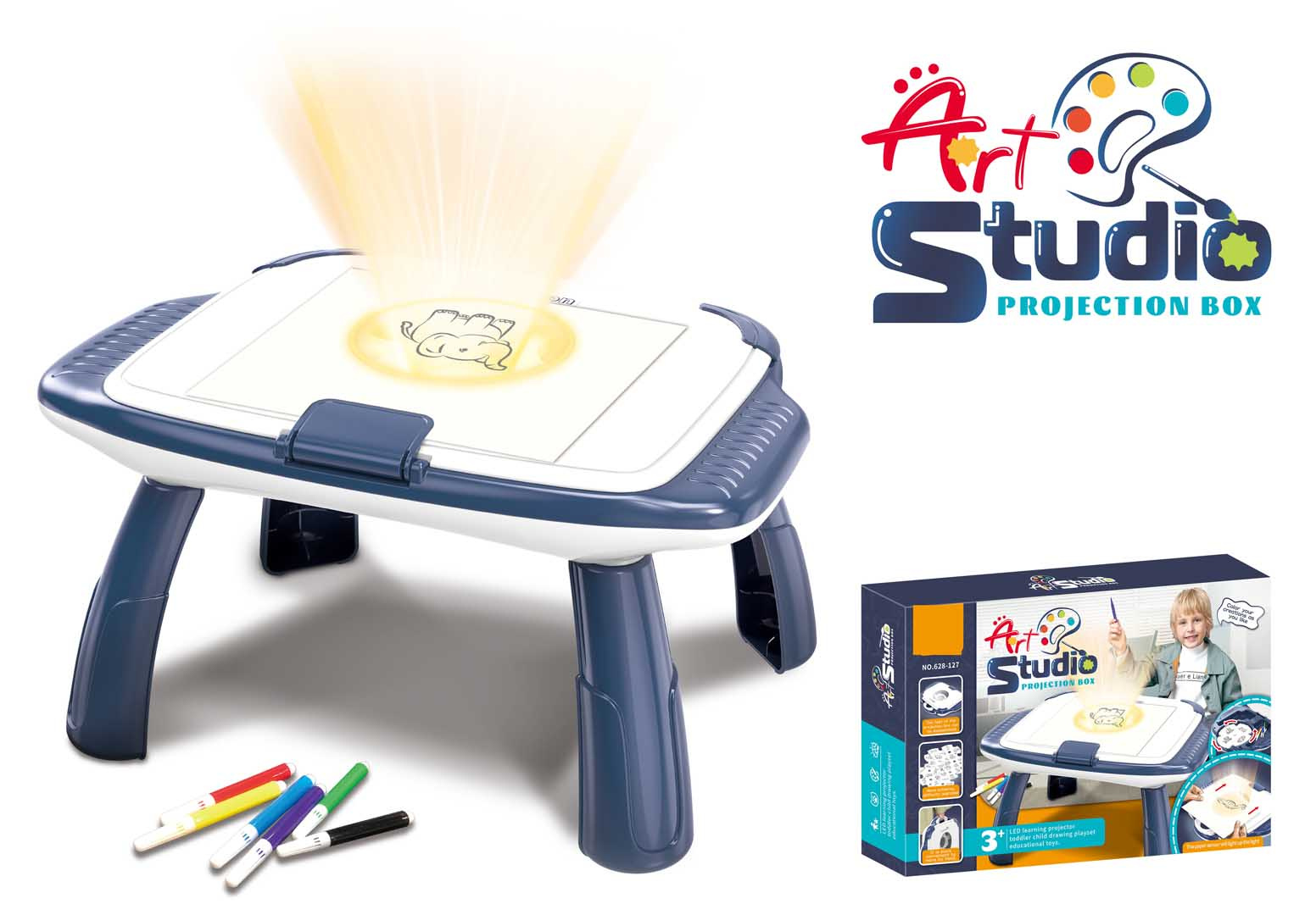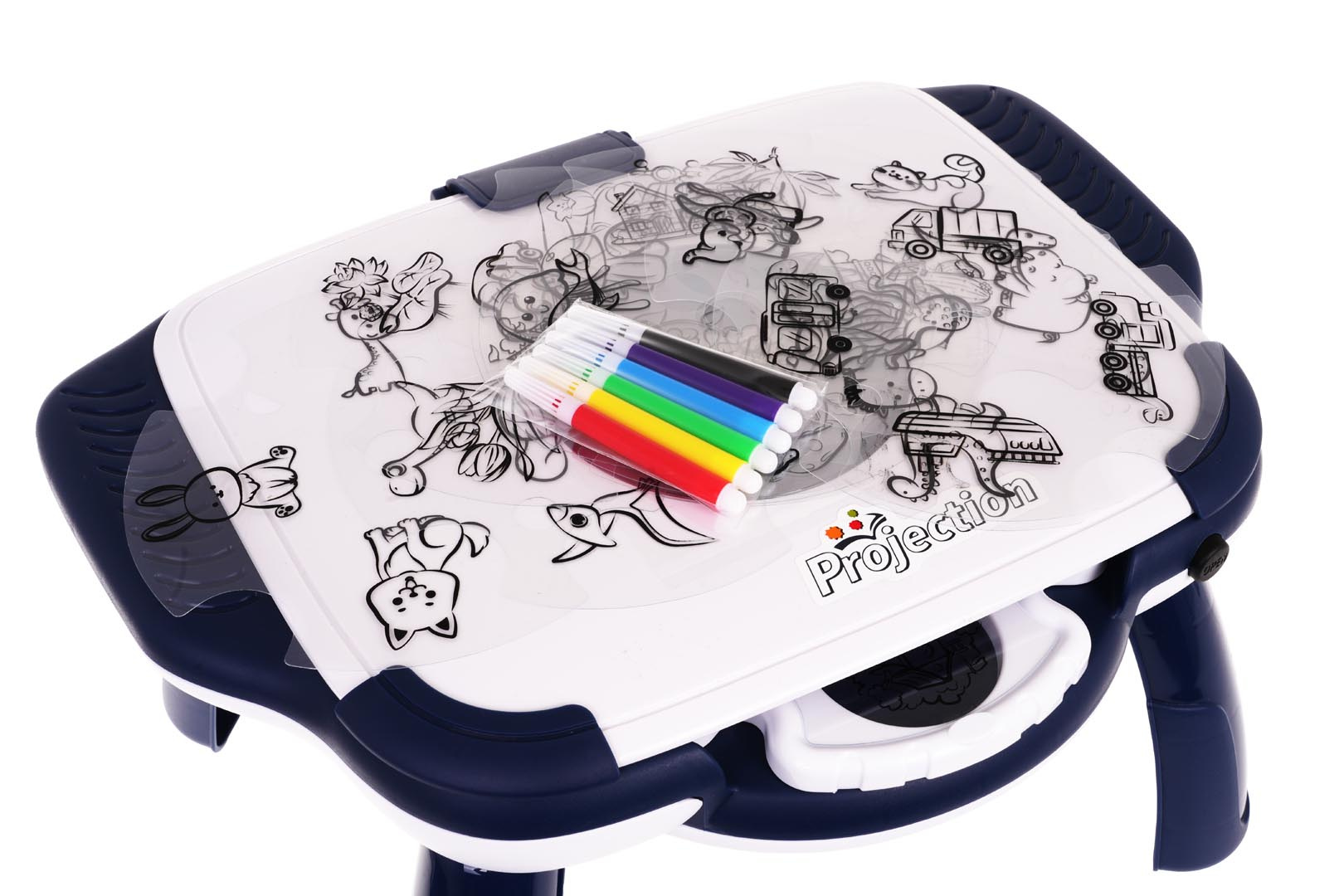 Projektor na malování pro děti od 3 let. Projektor byl navržen ve tvaru stolečku. Sada obsahuje 12 disků se 4 snímky. Stačí vložit kotouč a barevný snímek se objeví na horní části stolečku na malování. Následně dítě položí papír na stolek a obkreslí zobrazený obrázek. V sadě se nacházejí také barevné fixy na malování. Hračka je napájena bateriemi typu 3 x AA 1,5 V (nejsou součástí balení).