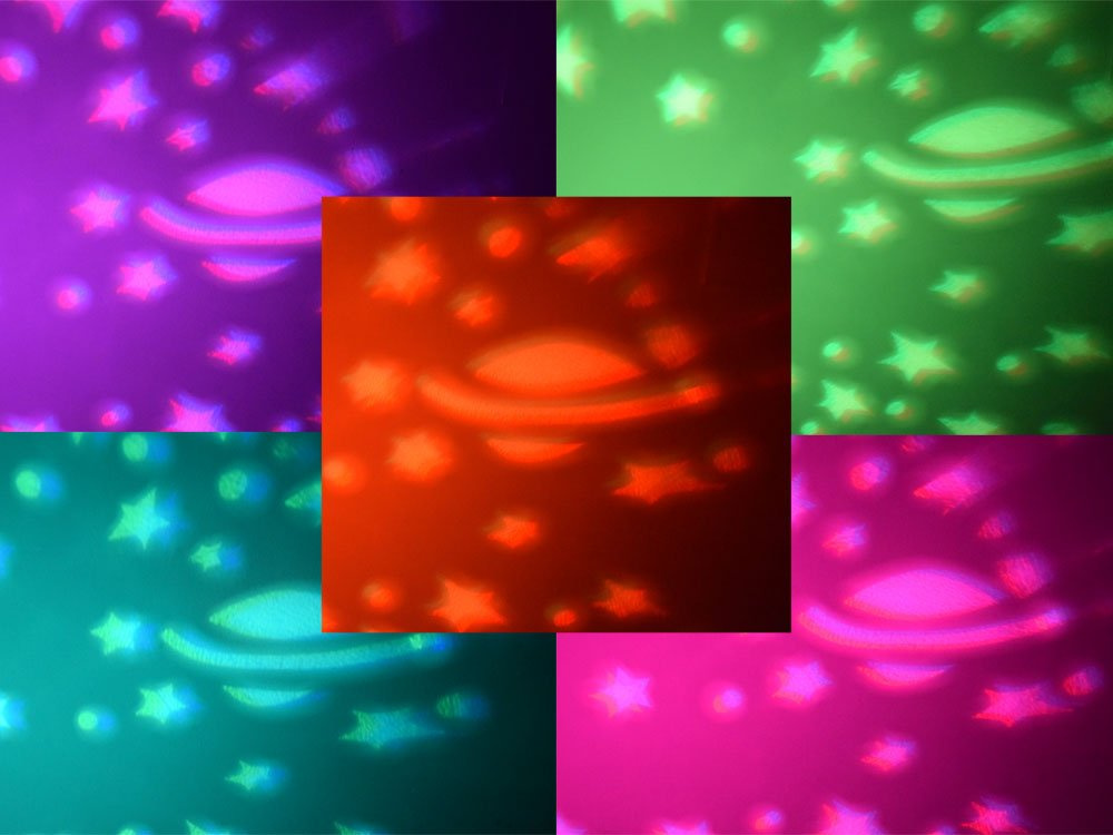 Hračka je napájena 3 bateriemi AAA (nejsou součástí balení). Projektor je z hračky zcela odnímatelný, což usnadňuje jeho čištění a údržbu. Doba trvání světelného efektu a hudby je 30 minut.