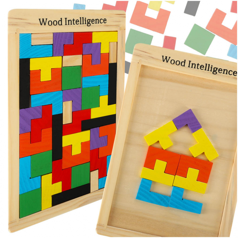 Dřevěné kostky Tetris se zaměřuje na dětskou představivost a šikovnost.