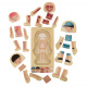 Kousky skládačky se překrývají ve vrstvách. Úkolem batole je uspořádat lidskou kostru, vnitřní orgány, svaly, tělo a nakonec oblečení do pořadí.