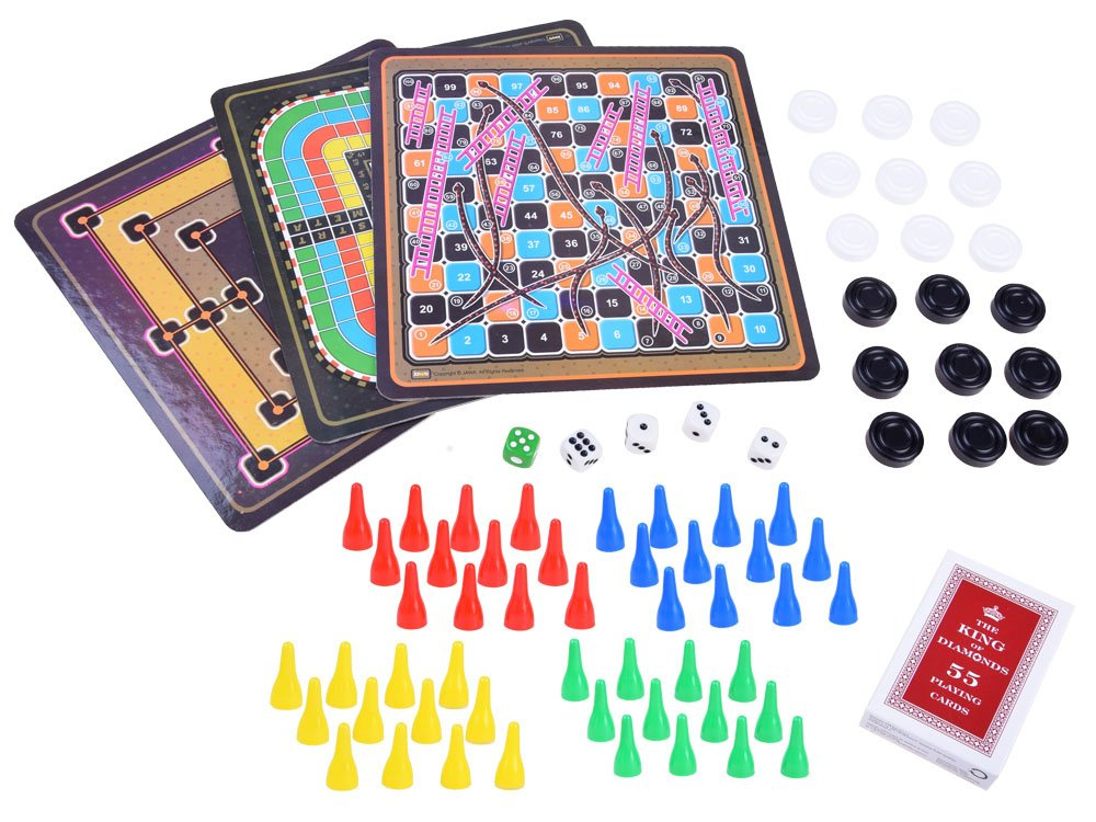 Základními hrami jsou čínština, hadi a žebříky, husy, halma, automobilové závody, mlýnek, kostky, pasiáns a karetní hry, pro které jsou připraveny různé herní návrhy. V příručce je 25 variant.