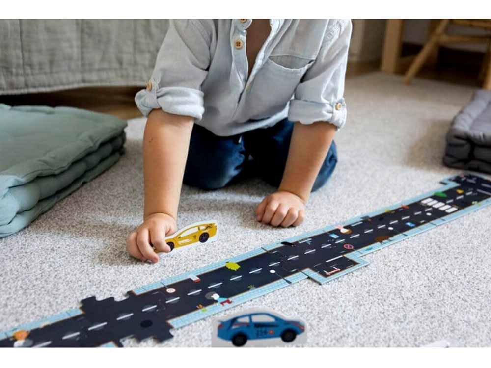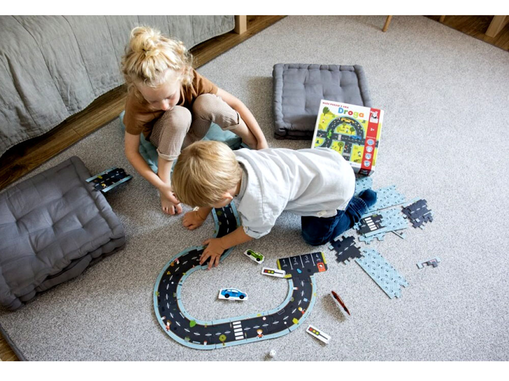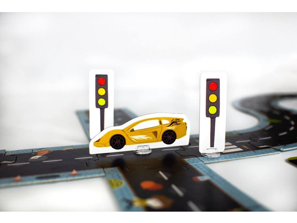 Velké herní puzzle se budou líbit těm nejmenším, kteří rádi staví vlastní stavby. Dílky lze kombinovat v libovolném pořadí, použít všechny, část úseku silnice nebo dokonce několik sad puzzle. Nadšenec do aut na palubě? Nechte ho rozvíjet fantazii, vytvářet trasy podle vlastních představ a stát se mistrem volantu v jízdě po městě.