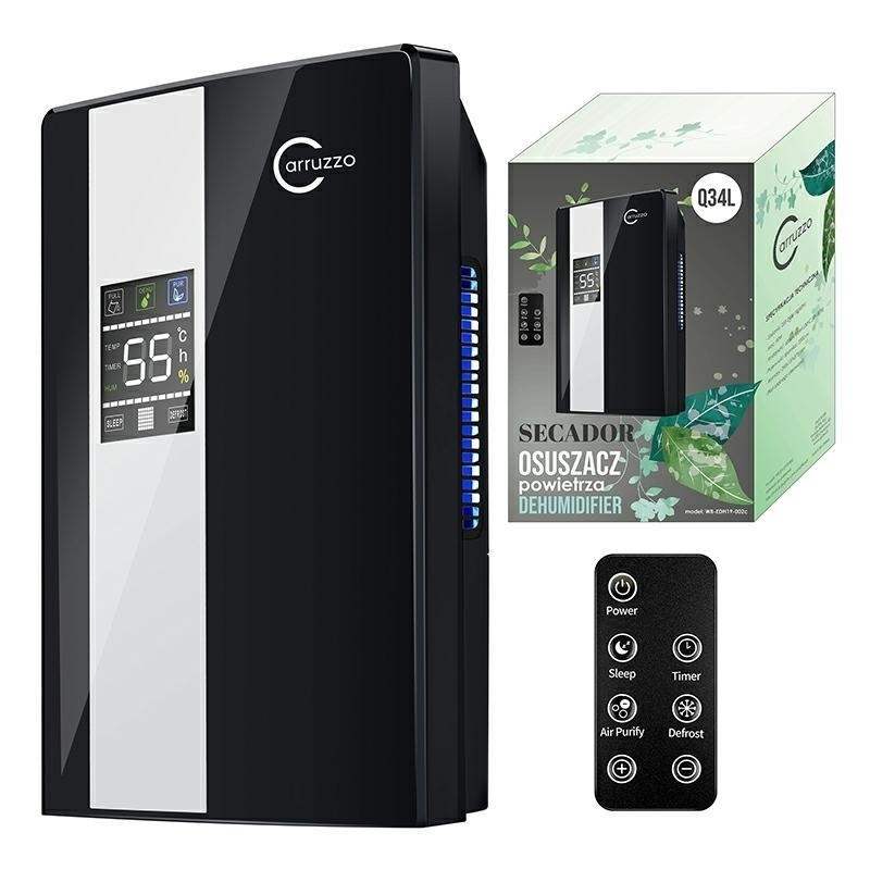 Odvlhčovač vzduchu snižuje riziko onemocnění, zejména nachlazení a alergií, a zlepšuje komfort pobytu v každé místnosti. Odvlhčování na principu technologie Peltiera, tedy velmi tichý provoz bez hlučného kompresoru. Odvlhčovač snižováním nadměrné vlhkosti zabraňuje nadměrnému rozvoji roztočů, bakterií, virů a plísní. Značka: Carruzzo Specifikace: -Výkon: 550ml-600ml / den (za optimálních podmínek) -Chladicí prvek: Termoelektrický modul Peltiera -Napájení: AC 220-240V / 50Hz -Výkon: 90W -Hladina hluku: 50 dB -Rozměry odvlhčovače: 24,5cm x 36,5cm x 14cm -Nádrž na vodu o kapacitě 2000ml (cca. 1500 ml užitného objemu) -Dálkový ovladač -Časovač: 1-24h -Funkce „Sleep”- ztlumený LCD displej -Funkce „Air Purify”- čištění vzduchu pomocí UV+TiO2 -Funkce „Defrost”- automatické odmrazování vnitřního prvku odvlhčovače. -Hygrometr -Teploměr -Hygrostat (rozsah možnosti nastavení od 40% do 70%) umožňuje regulaci vlhkosti v místnosti. Po nastavení vlhkosti zařízení odvlhčuje vzduch pouze do zadaného okamžiku. - Další prvky: odtoková hadice o délce 1 m - Vestavěné držadlo umožňující snadné přenášení zařízení - Automatické vypnutí po naplnění nádrže rozměry balení: 29x41x18 cm Počet kusů. na paletě: 72