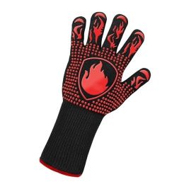 Žáruvzdorná rukavice pro použití při grilování, v troubě nebo při přípravě jídel na ohništi. Vyrobena z pečlivě vybraných materiálů zajišťuje pohodlí a ochranu při kontaktu s horkými povrchy. Specifikace: Vnější materiál: nehořlavé vlákno + polyesterová bavlna + křemíkový gel Vnitřní materiál: polyesterová bavlna Standardní provozní teplota je přibližně 500°C. Rukavice může být používána maximálně 8 sekund v kuse při teplotě 800°C.