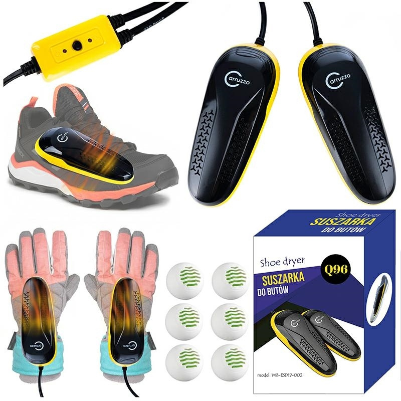Velmi výkonná sušička na obuv, rukavice, helmy, ponožky atd. s funkcí dezinfekce ozonem. Dvojí účinek sušičky: 1. Dezinfekce: Boty jsou osvěžovány pomocí technologie Active Oxygen (ozon). Ozon bojuje proti plísním a bakteriím, které jsou m.in. příčinou vzniku nepříjemného zápachu. 2. Sušení: Boty jsou sušené. Proces probíhá zevnitř, což je pro boty mnohem lepší než například jejich sušení na radiátoru. Marka: Carruzzo Specifikace: -Teplota zařízení během provozu: 45st.C +/- 10st.C -Napájení: 220-240V 50/60HZ -Výkon 8W -Rozměry produktu: 60x160x35 mm Osvěžující kuličky zdarma Počet kusů. na paletě: 320