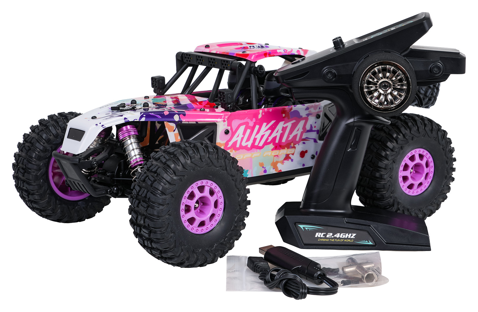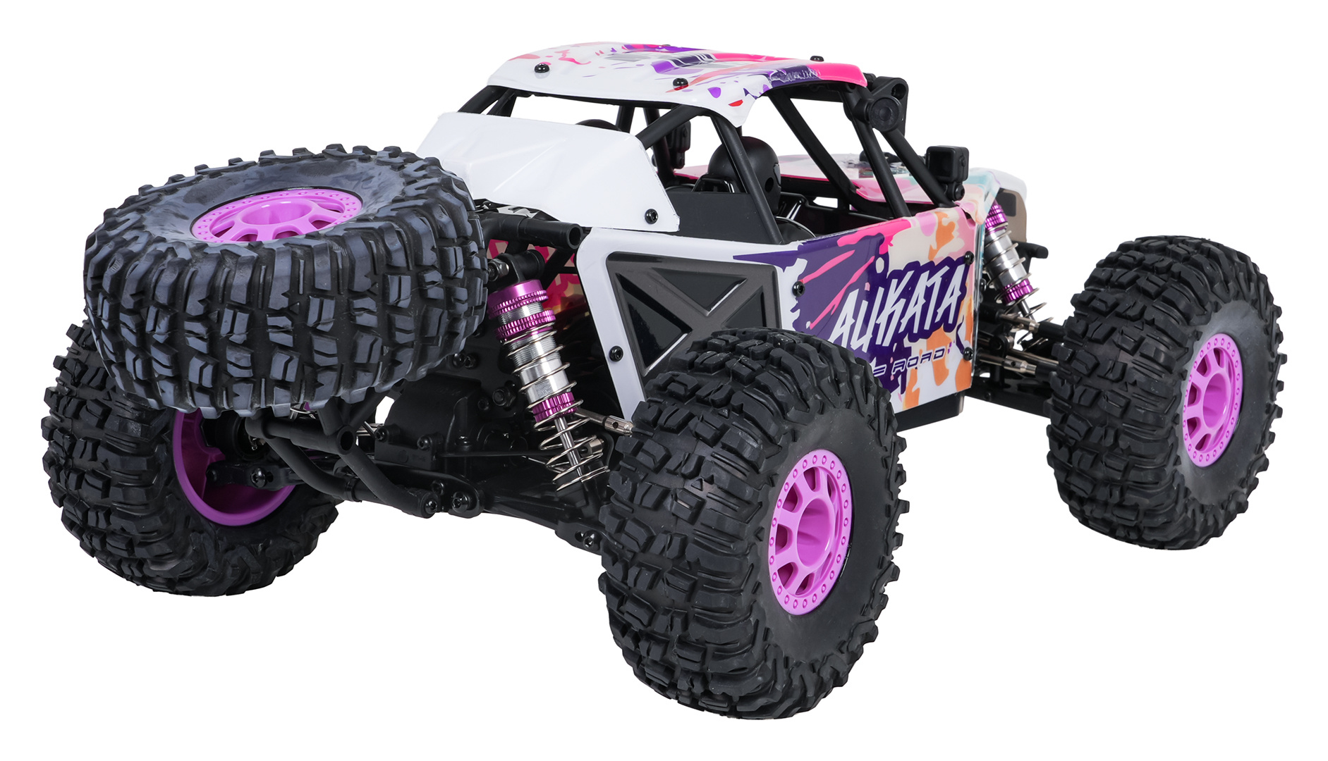 Mega rychlý crawler Alikata vyrobený v měřítku 1:12 pro děti od čtrnácti let a dospělé. Postavený z nejkvalitnějších materiálů, je odolný proti nárazům a poškození. Má kovovou karoserii, kovový podvozek a upravený pohonný systém, aby lépe odolával nárazům. Velké gumové protiskluzové pneumatiky mu zajišťují dobrý přilnavost k povrchu. V sadě se nachází také rezervní kolo. Pohon na 4 kola a nastavitelné hliníkové tlumiče zajišťují, že se vozidlo skvěle ovládá. Toto úžasné terénní vozidlo dokáže dosáhnout rychlosti až 50 km/h za 3 sekundy. Crawler je vybaven výkonným akumulátorem 7,4 V (v balení), ovladač je napájen bateriemi typu 3 x AA 1,5 V v balení.