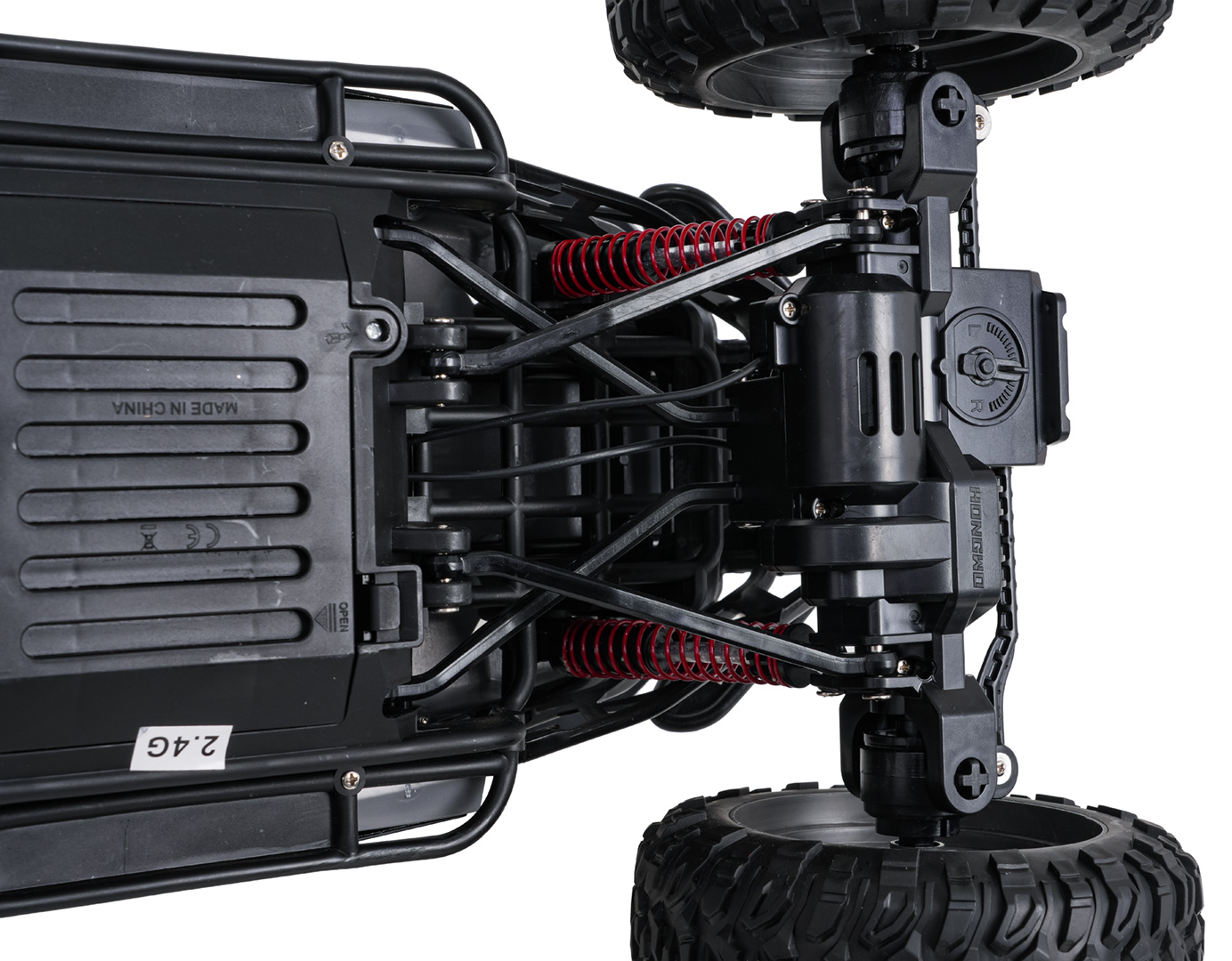 | Kovové, terénní, dálkově ovládané vozidlo s pohonem na čtyři kola je určeno pro děti od tří let. Gumové pneumatiky, pružinové zavěšení každého kola zajišťuje, že vozidlo bez problémů překoná jakýkoli povrch. Crawler je vyroben z vysoce kvalitních materiálů, má kovovou karoserii, což mu zajišťuje odolnost. Hračka je napájena bateriemi typu 3.7V (v sadě), dálkový ovladač bateriemi typu 2 x AA 1,5V (není v sadě). Čas nabíjení vozidla je přibližně dvě hodiny, doba jízdy přibližně 10 minut.