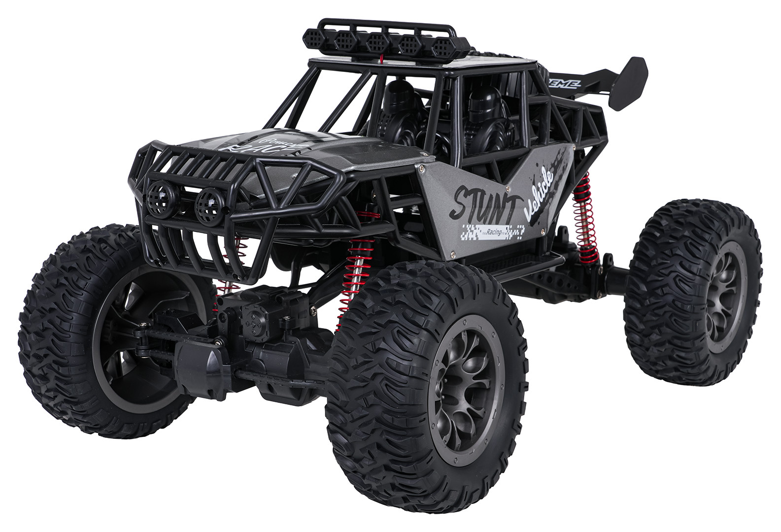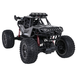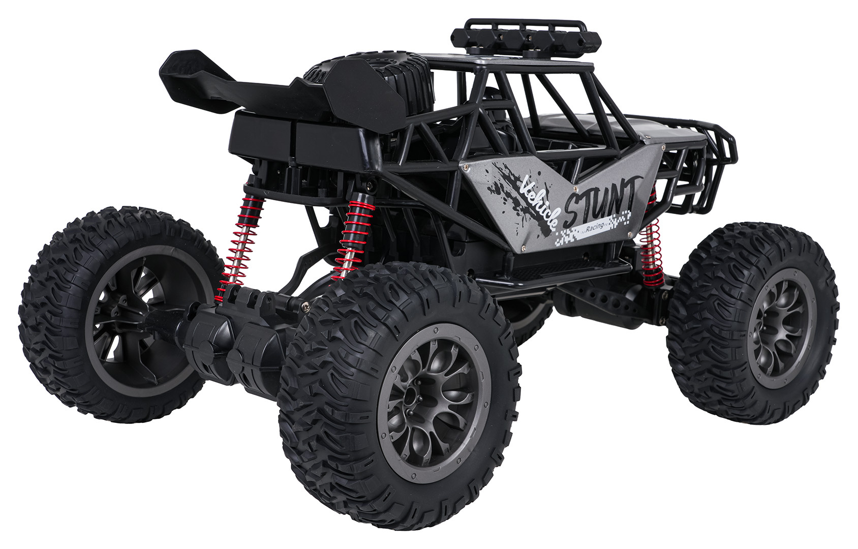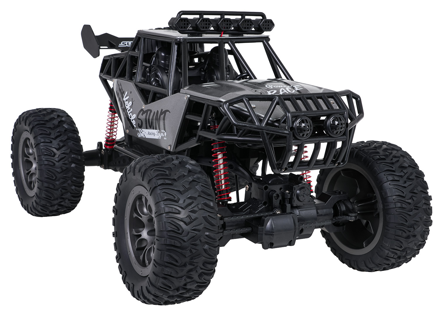 Kovový crawler STUNT Racing Šedý v měřítku 1:8, dálkově ovládaný s pohonem na čtyři kola je určen pro děti od šesti let. Velké gumové, protiskluzové pneumatiky, pružinové zavěšení způsobuje, že vozidlo bez problémů překoná jakýkoli povrch. Crawler je vyroben z vysoce kvalitních materiálů, má kovovou karoserii, což mu zajišťuje odolnost. Motor použitý ve vozidle umožňuje dosažení vysoké rychlosti. Hračka je napájena akumulátorem typu 7,4V (v balení), ovladač bateriemi typu 4 x AA 1,5 V (nejsou součástí balení).