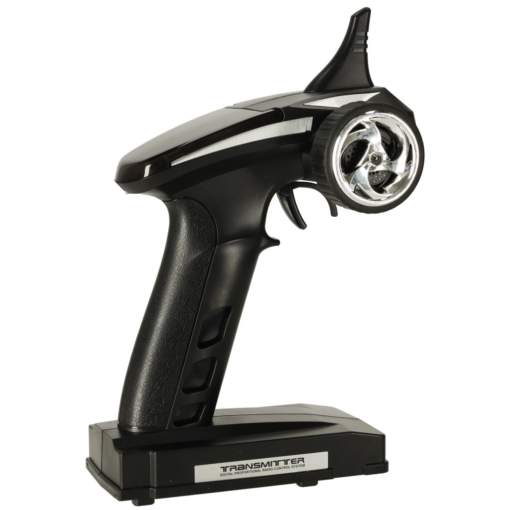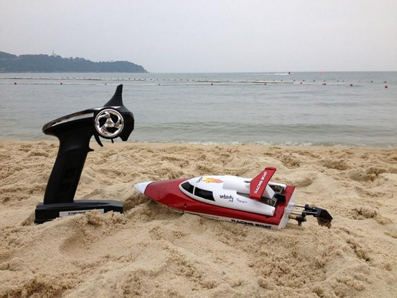 Ovladač řízení motorového člunu je ve tvaru pistole, což umožňuje pohodlné ovládání člunu. Pro zkušenější závodníky má ovladač mnoho pokročilých nastavení, která pomáhají s přesným ovládáním lodi.Samotné ovládání je velmi jednoduché, takže tento model lze dětem rozhodně doporučit. Motorový člun je řízen rádiem na frekvenci 2,4 GHz, což dává velký dosah až 150 m a umožňuje neomezené přeplavání vod.